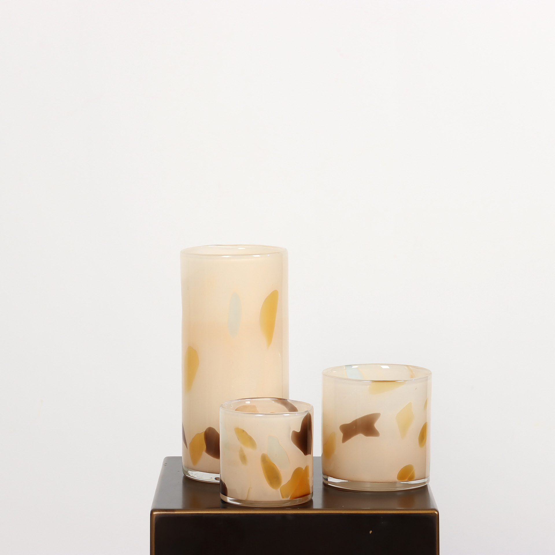 젠틀 인 밀크 옐로우 컬러 포인트 스트레이트 바스 캔들 컵 콤비네이션 수제 유약 꽃 꽃병 꽃 장식품 꽃 정렬 모델 룸