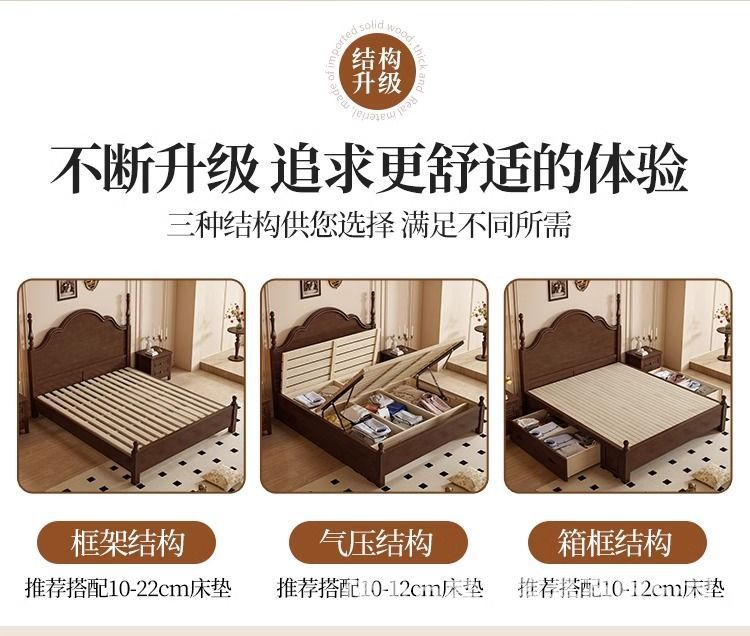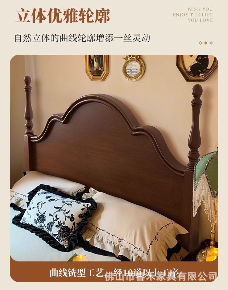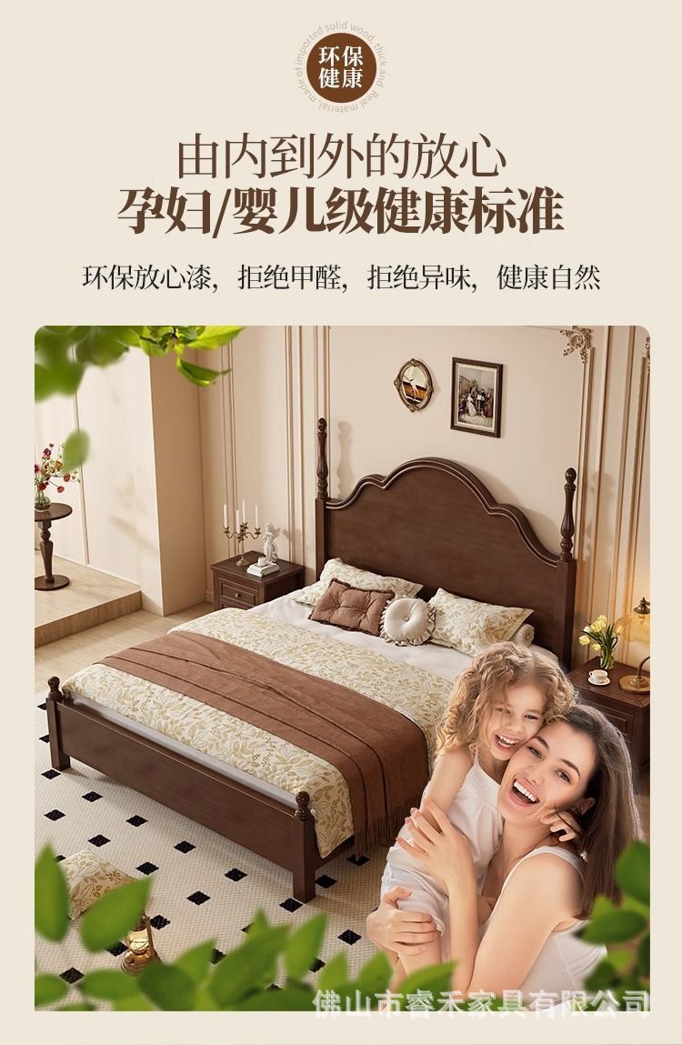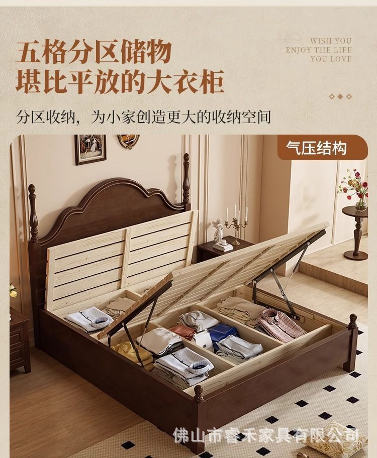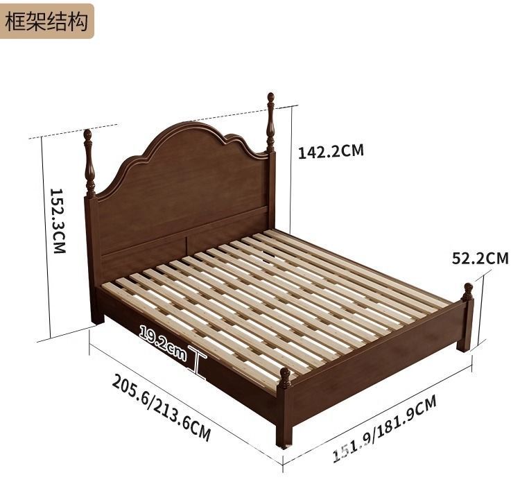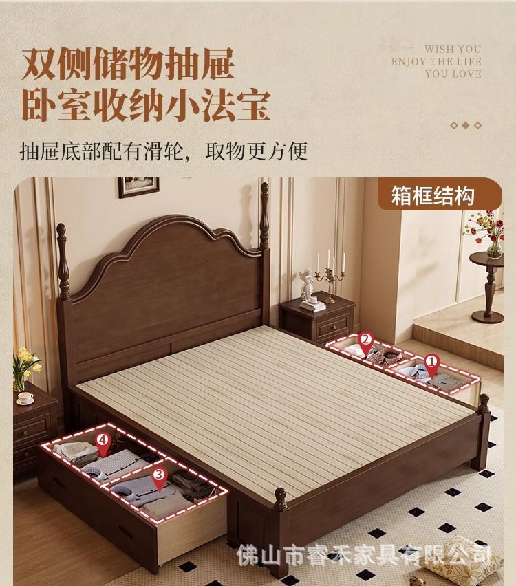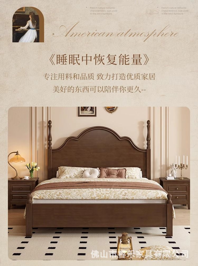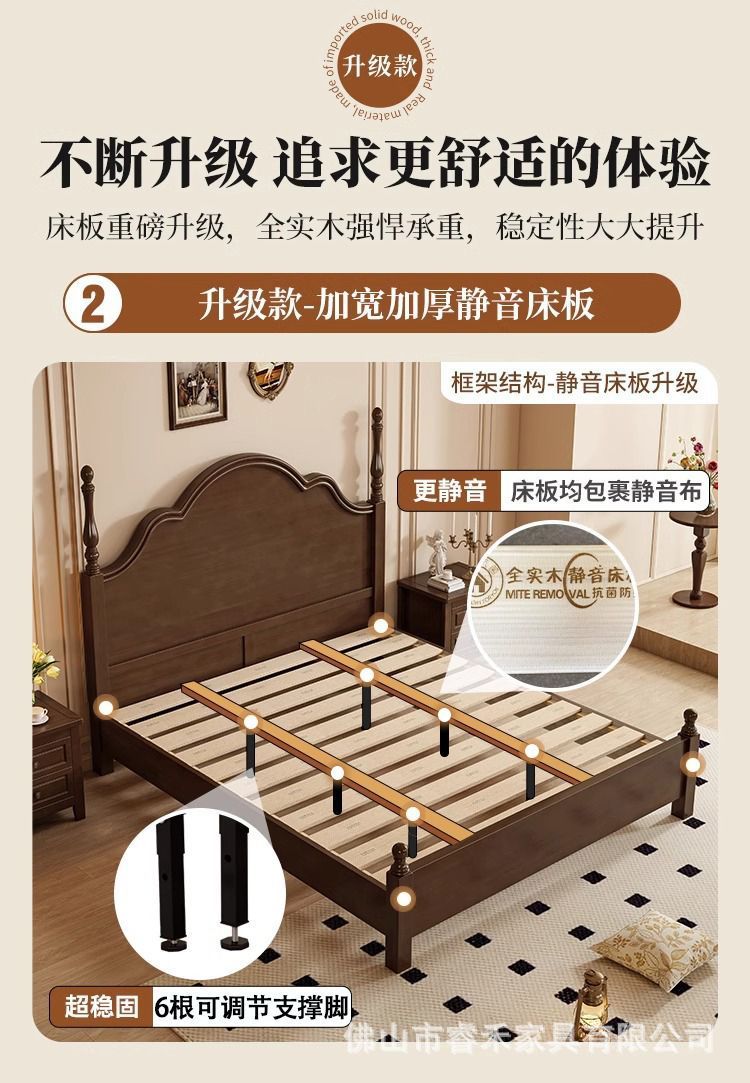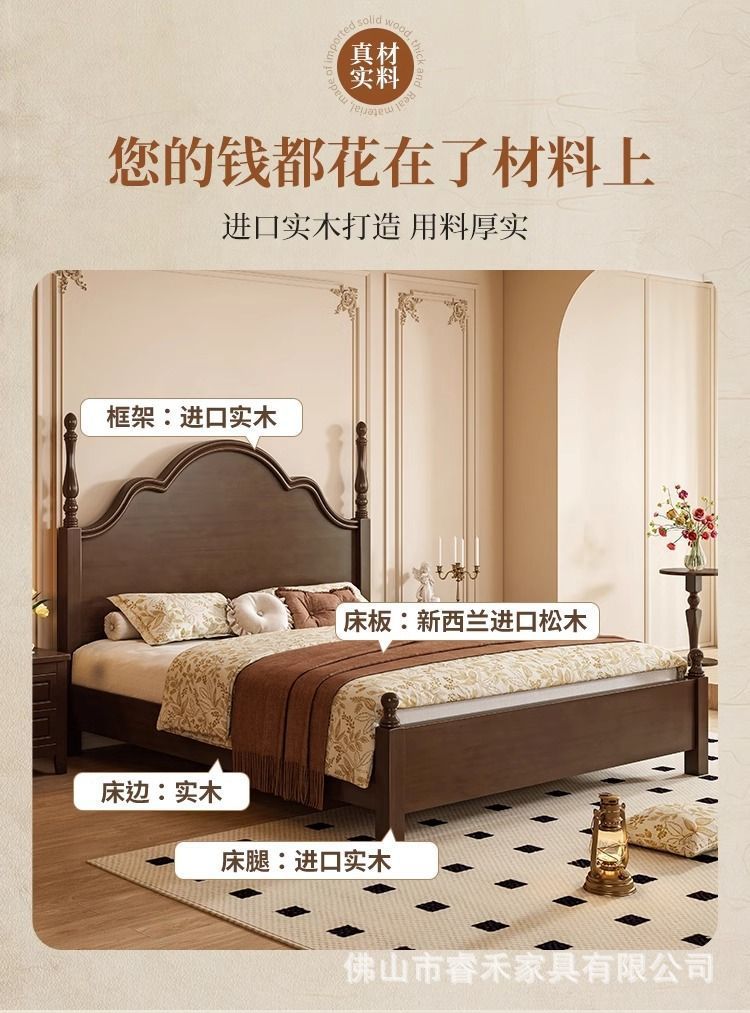 단단한 나무 침대 현대 간단한 홈 마스터 침실 미국 더블 침대 프랑스 로마 칼럼 저장 인터넷 인기있는 복고풍 스타일 큰 침대스토어 가기