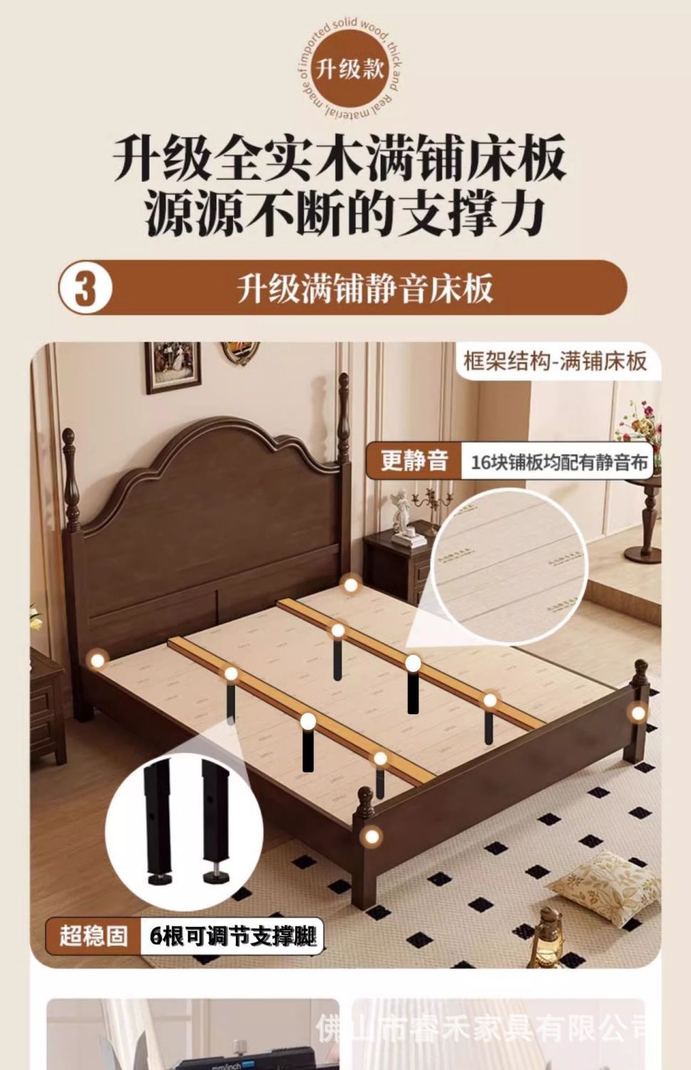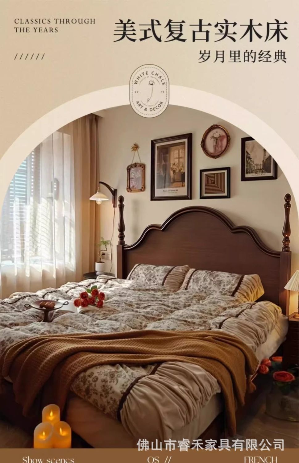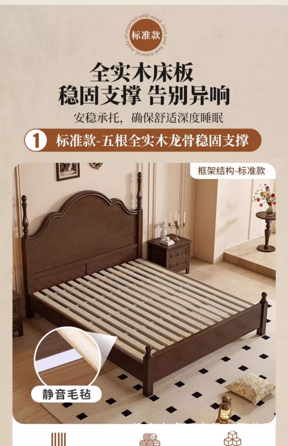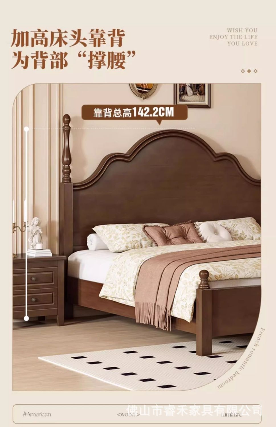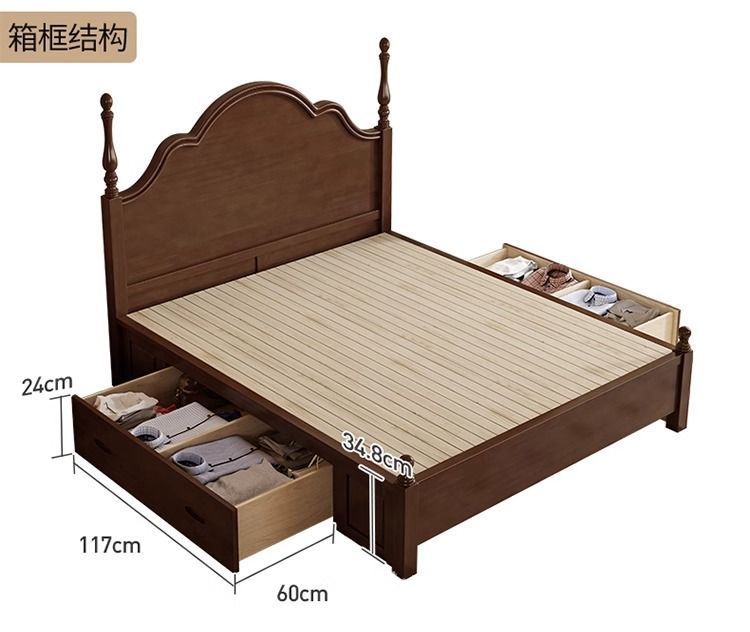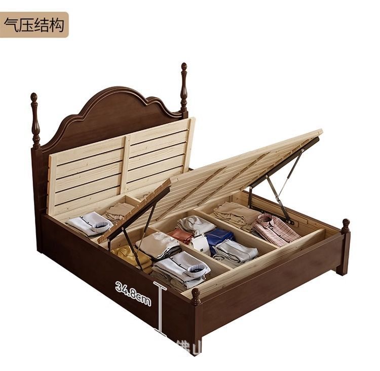 단단한 나무 침대 현대 간단한 홈 마스터 침실 미국 더블 침대 프랑스 로마 칼럼 저장 인터넷 인기있는 복고풍 스타일 큰 침대스토어 가기