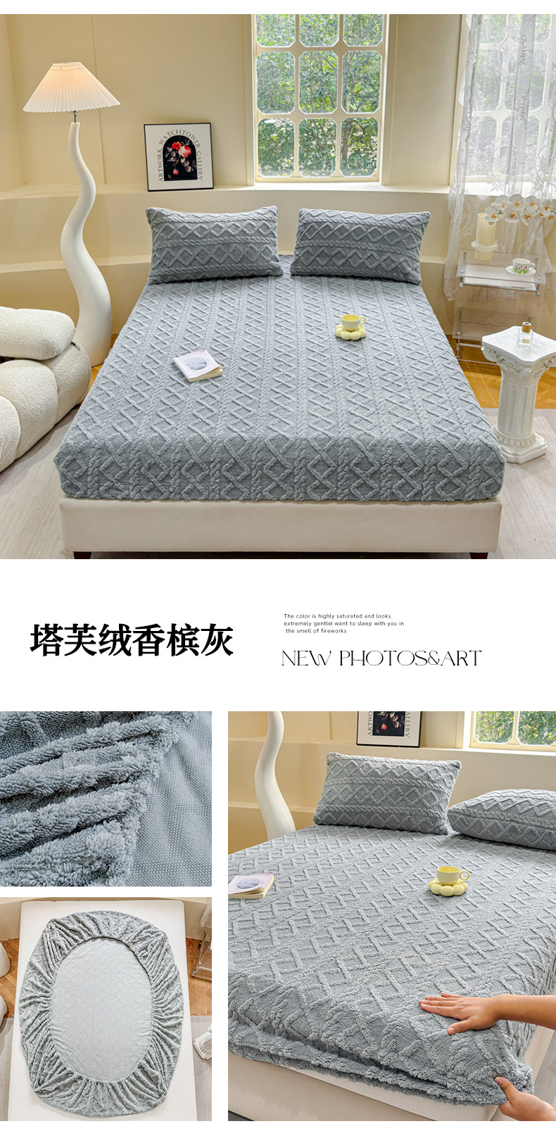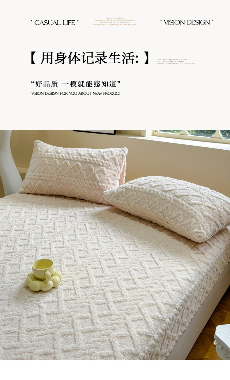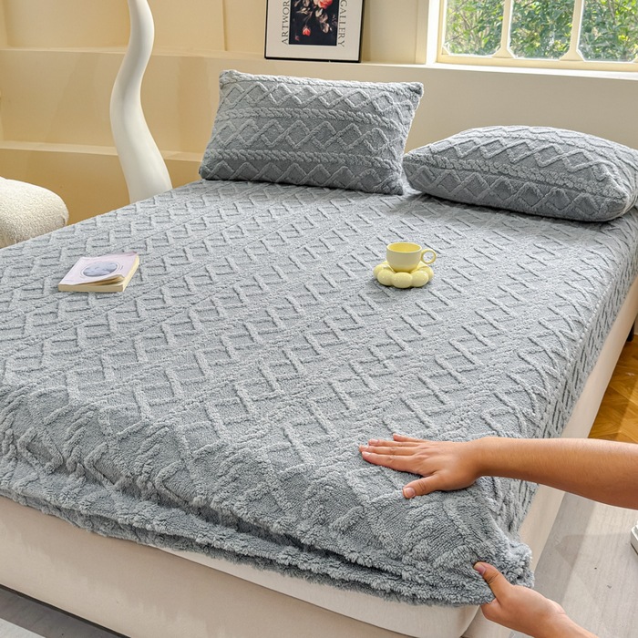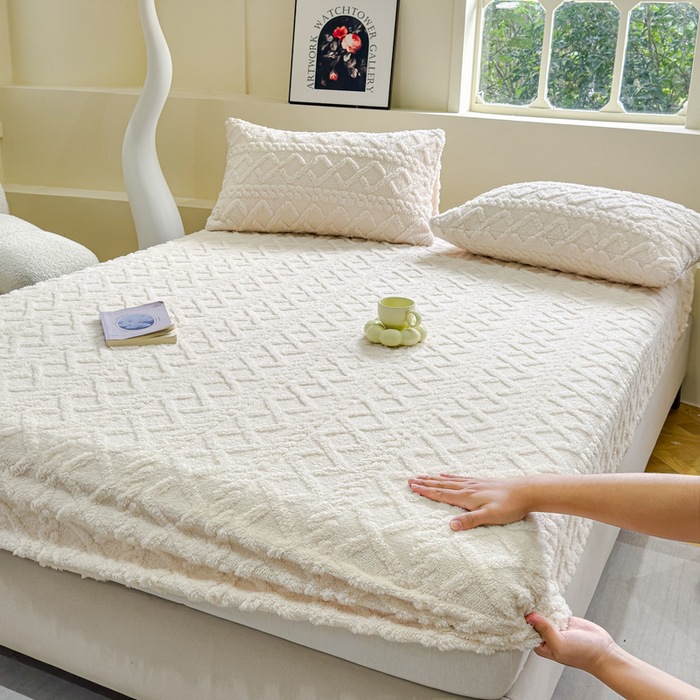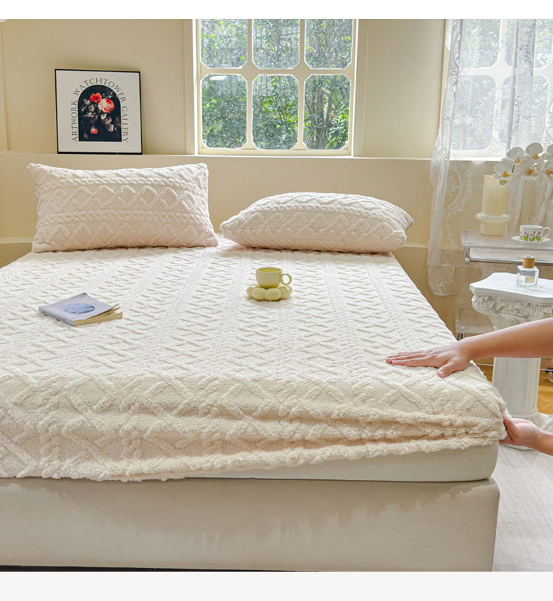 2024 새로운 타푸 양털 솔리드 컬러 3 차원 우유 양털 침대 커버 세트스토어 가기