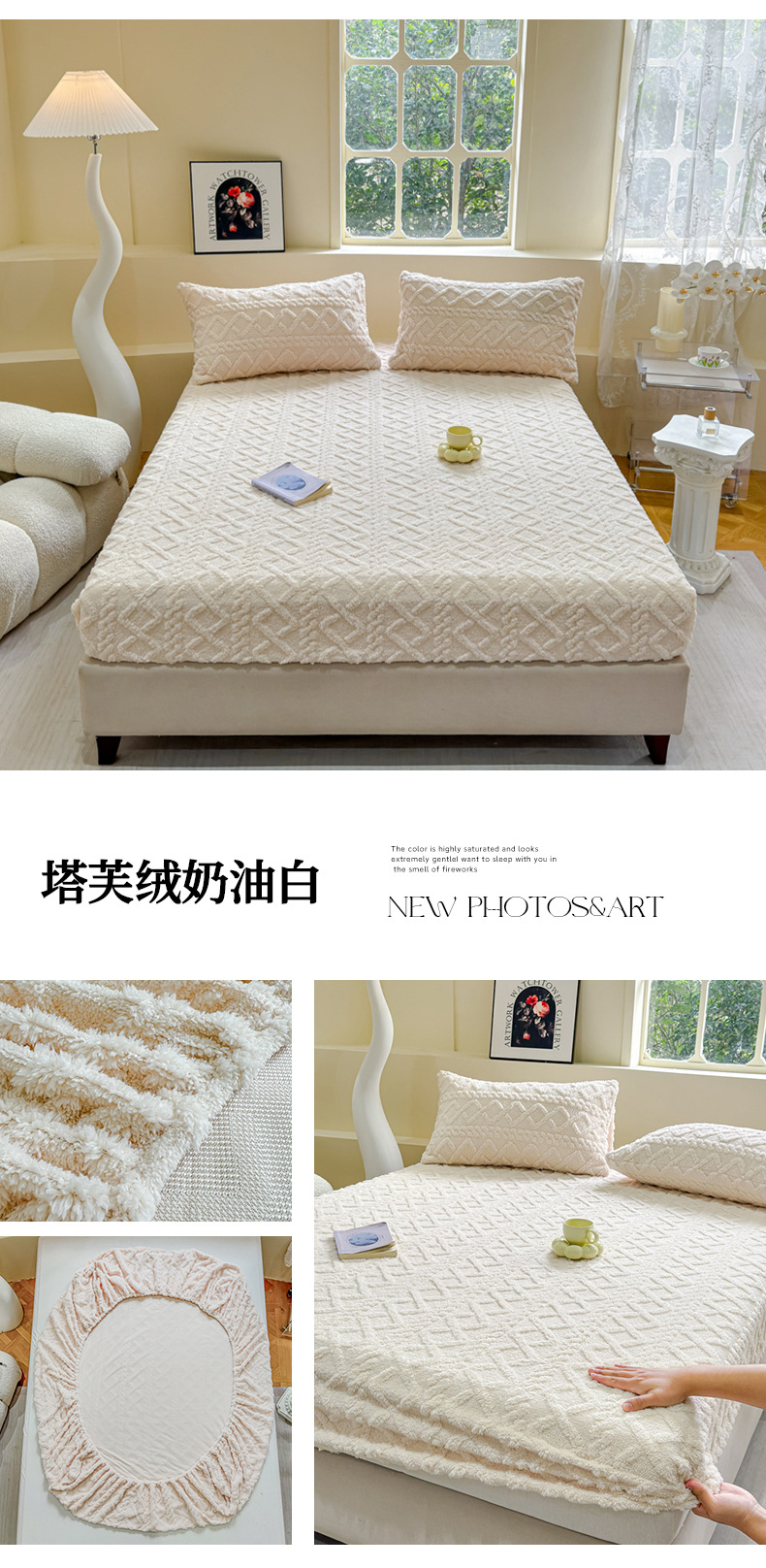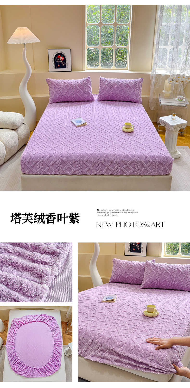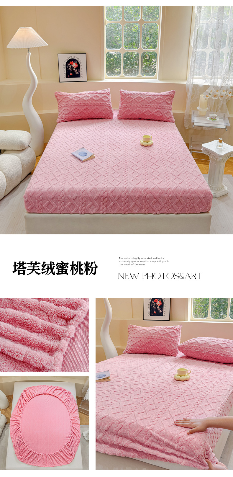 2024 새로운 타푸 양털 솔리드 컬러 3 차원 우유 양털 침대 커버 세트스토어 가기