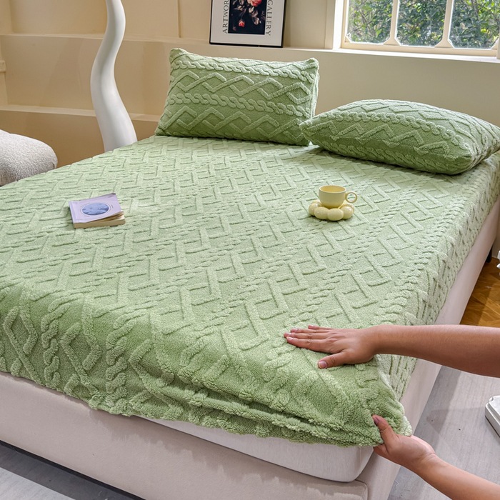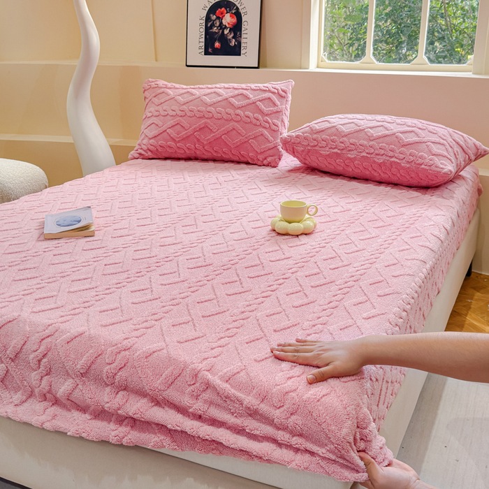 2024 새로운 타푸 양털 솔리드 컬러 3 차원 우유 양털 침대 커버 세트