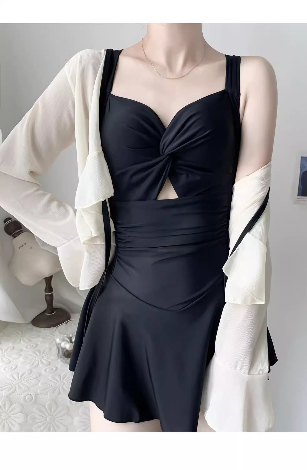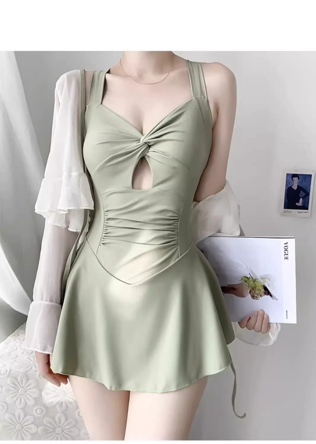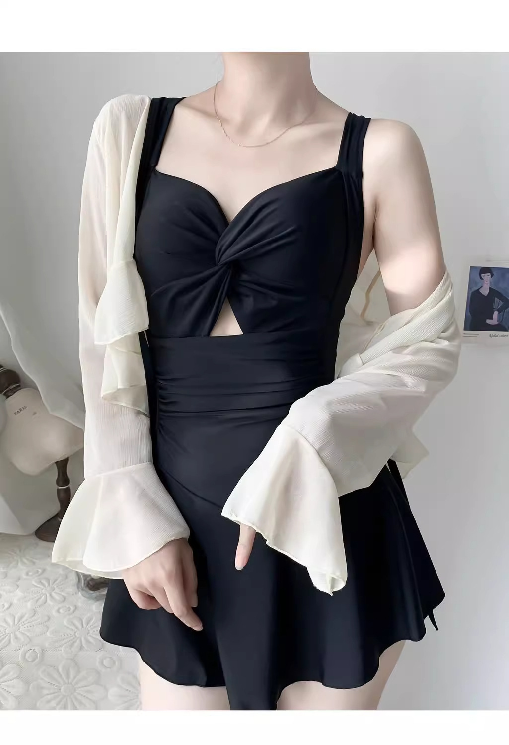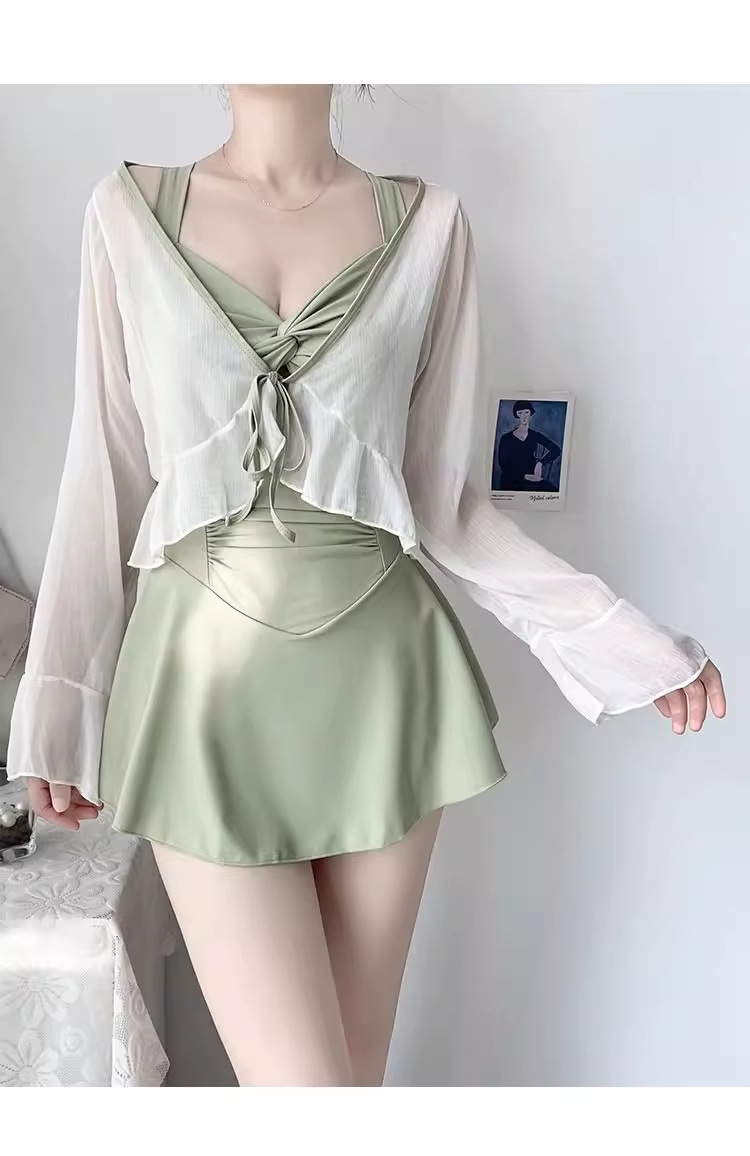 수영복 여성의 결합 된 보수적 인 긴팔 인터넷-인기있는 스타일 슬리밍 벨리 커버하는 약간의 뚱뚱한 소녀의 고기 고급 감각 순수한 불멸스토어 가기