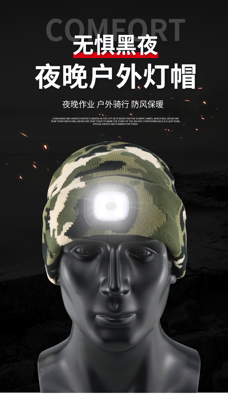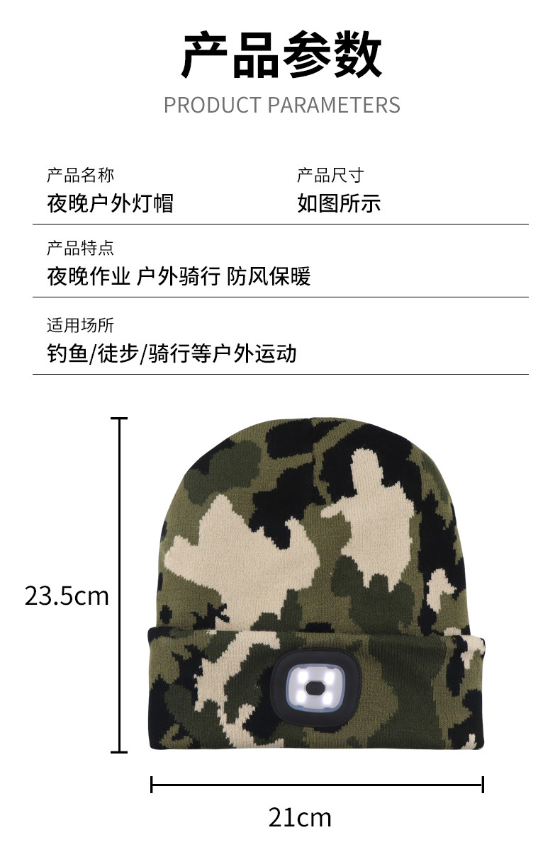 겨울 위장 LED 가벼운 모자 니트 따뜻한 감기 조명 야외 스포츠 모자 야경 모험 모자 남자스토어 가기