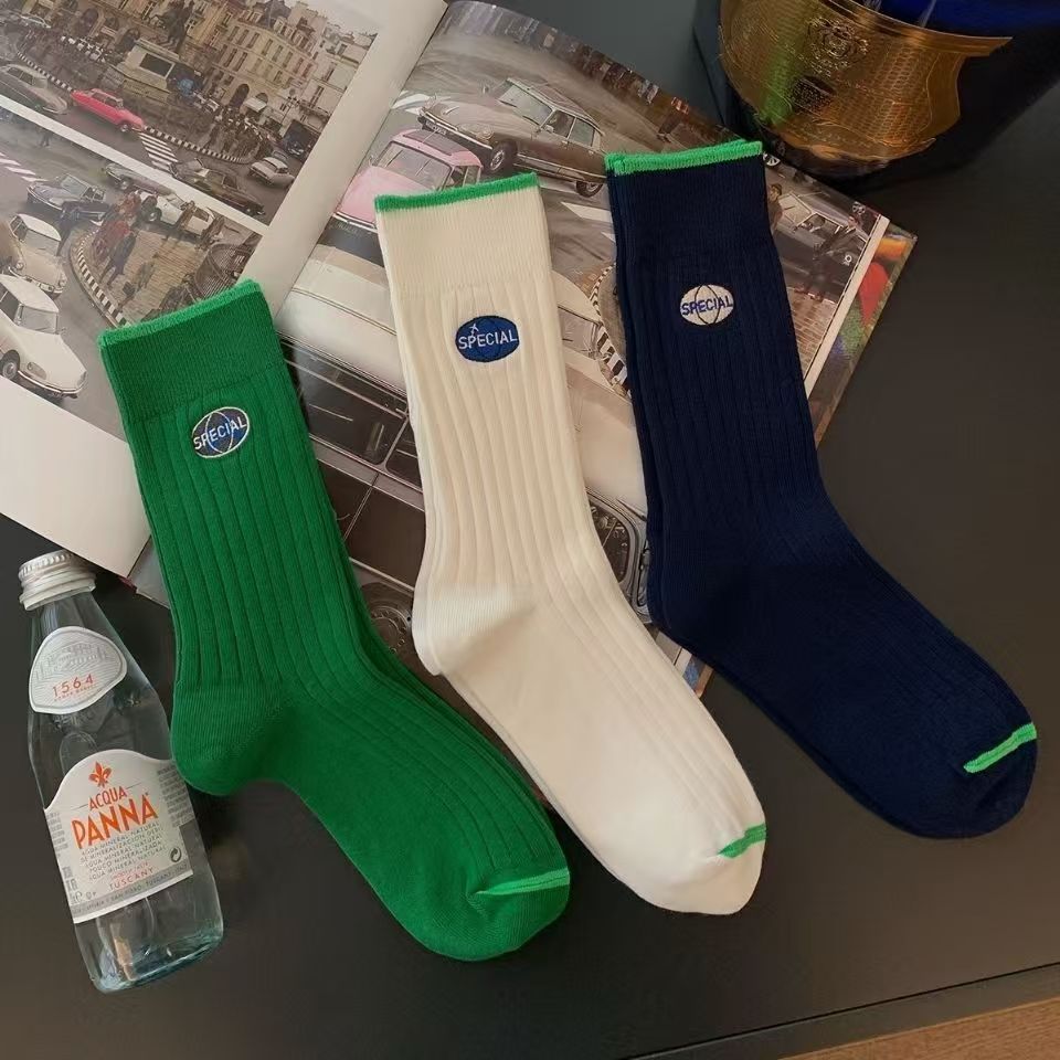 Ins 롱 튜브 그린 양말 여성 타원형 편지 솔리드 컬러 유니섹스 유니섹스 스타일 유니섹스 인기 인터넷 올 매치 스포츠 유행 양말스토어 가기