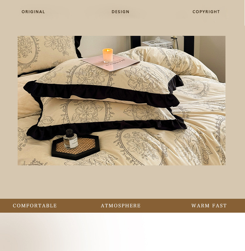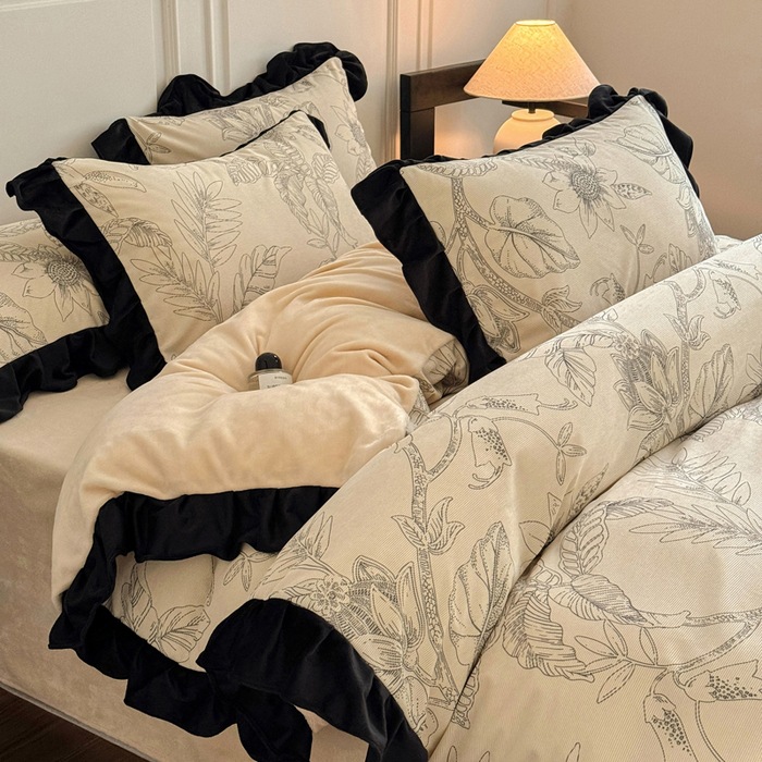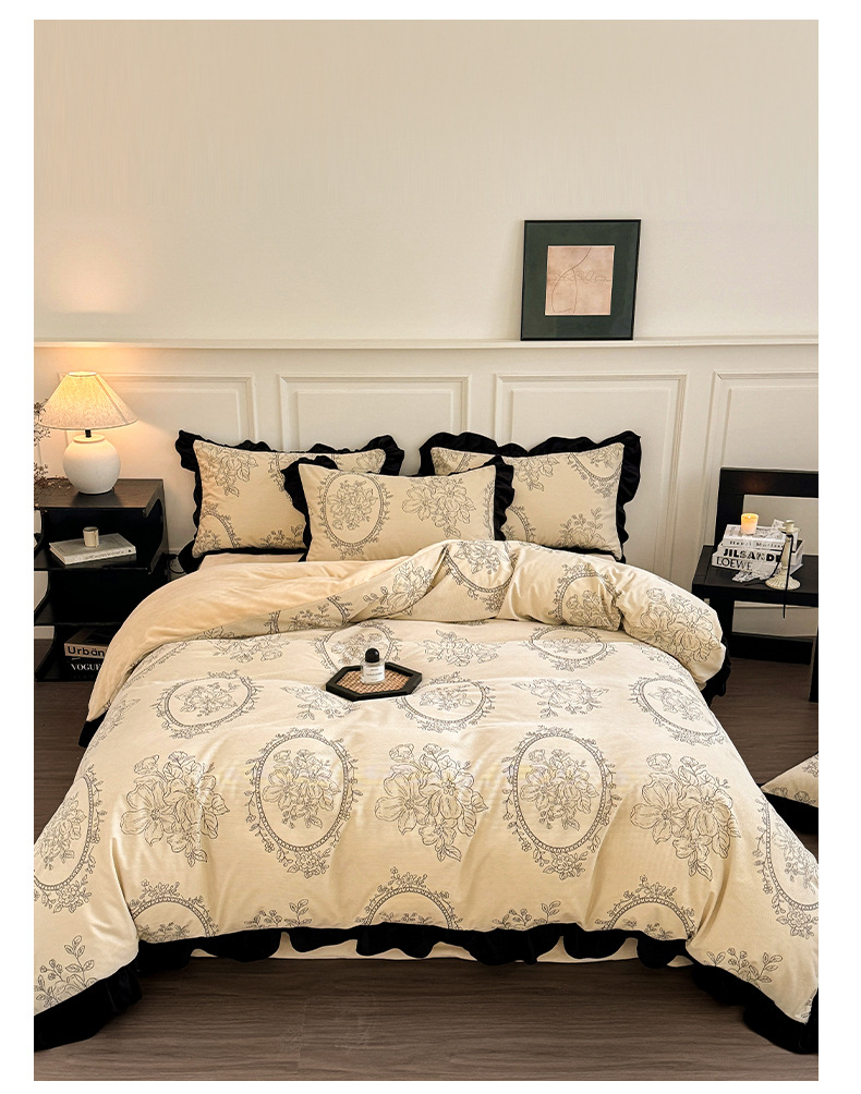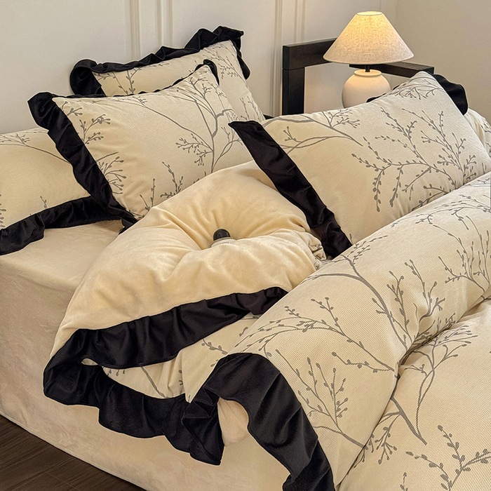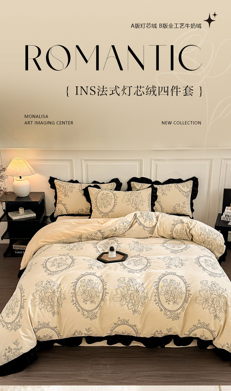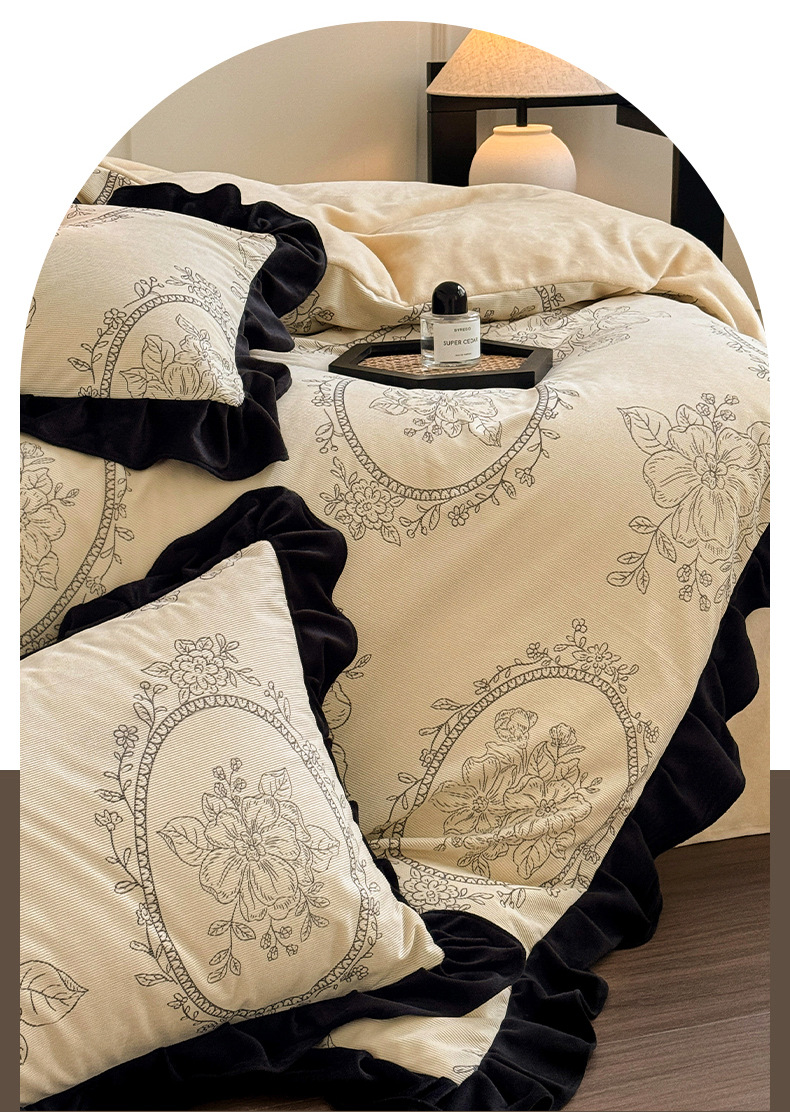 2024 가을과 겨울 빛 프랑스 스타일 코듀로이 자카드 3 차원 한국 레이스 밀크 벨벳 4 피스 세트