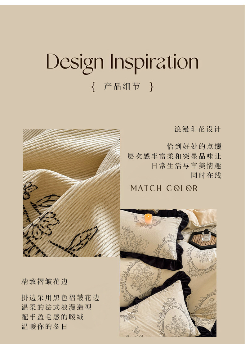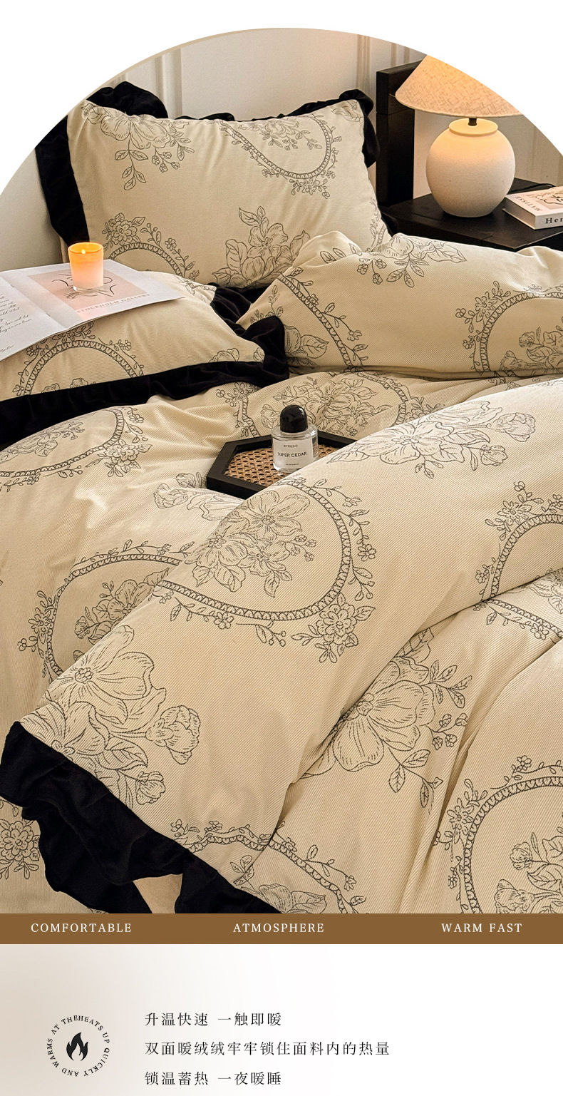 2024 가을과 겨울 빛 프랑스 스타일 코듀로이 자카드 3 차원 한국 레이스 밀크 벨벳 4 피스 세트스토어 가기