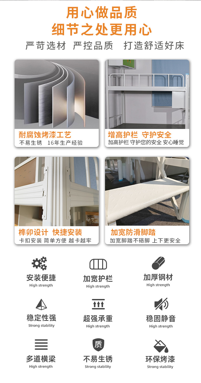 Siamedly Upper and Lower Bed Iron Frame Bed 4-in-One Step Ladder Upper and Lower Iron Bed 아파트 기숙사, 보관 철 침대