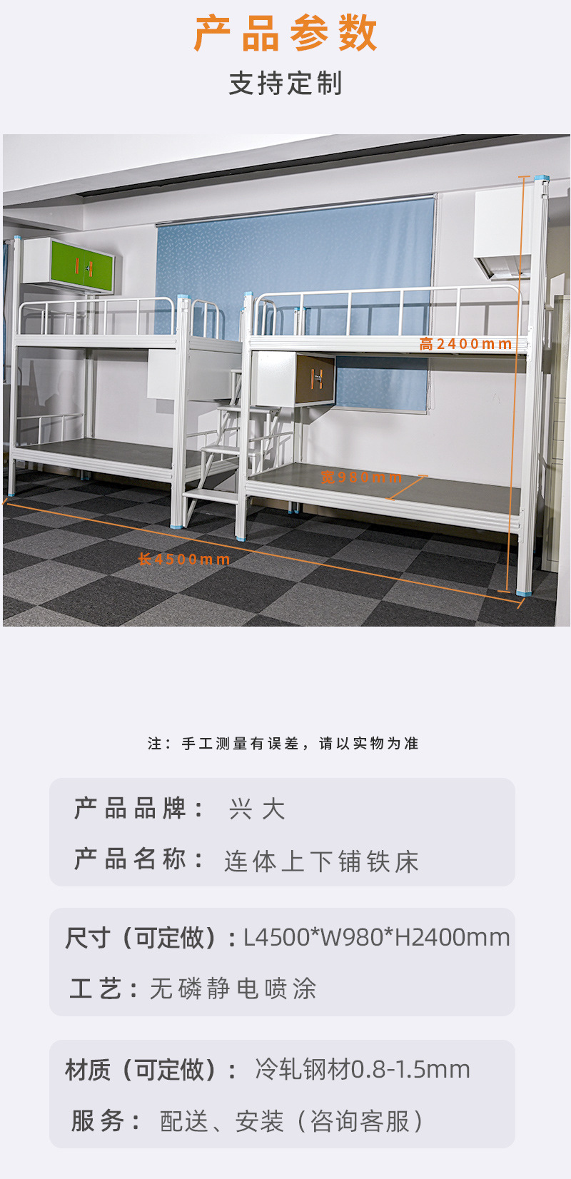 • 65개 개방형 + 80개 폐쇄형 4448*982*1800 침대 프레임(캐비닛 포함)