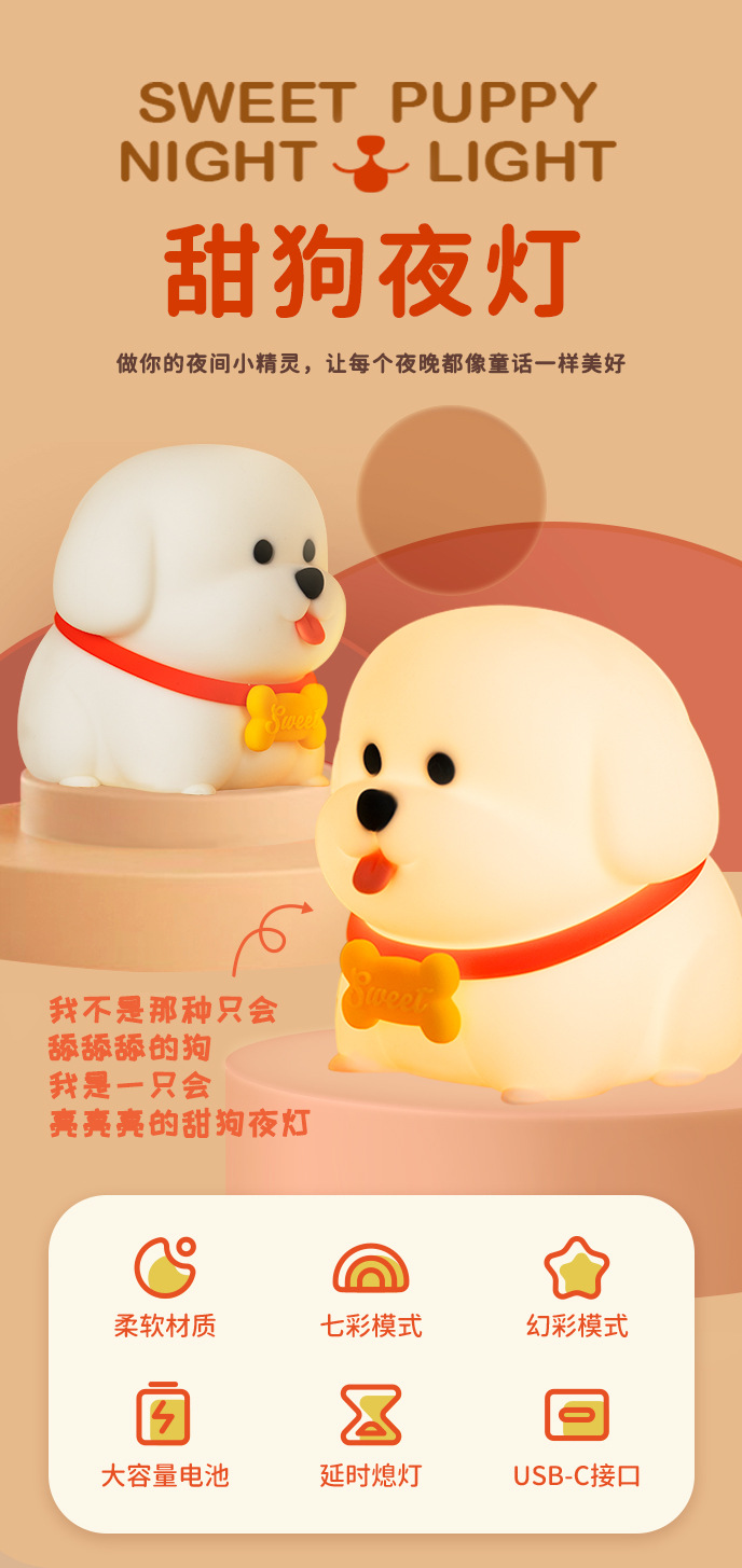 스위트독 나이트라이트 센서 수면등 창의적인 장식등 터치램프 눈보호 충전식 분위기 고급 나이트라이트스토어 가기