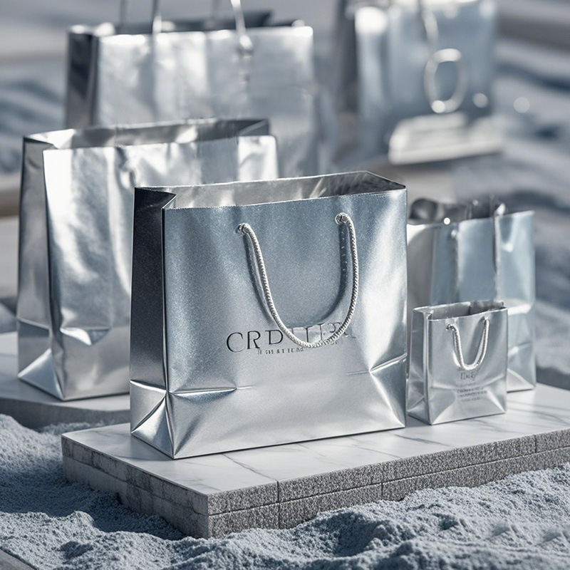 레이저 실버 종이 가방 맞춤형 거울 선물 가방 맞춤형 실버 카드 핸드백 공장 선물 가방에 대한 국경 간 전용