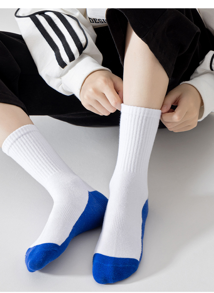 단색 어린이 학생 양말 4 계절 흑백 통기성 튜브 양말면 어린이 양말 높은 고무면 양말스토어 가기