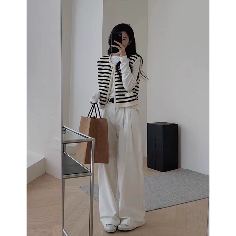 샤넬 스타일 흑백 줄무늬 민소매 니트 조끼 코트 여성의 봄과 가을 카디건 외부 스웨터 조끼스토어 가기