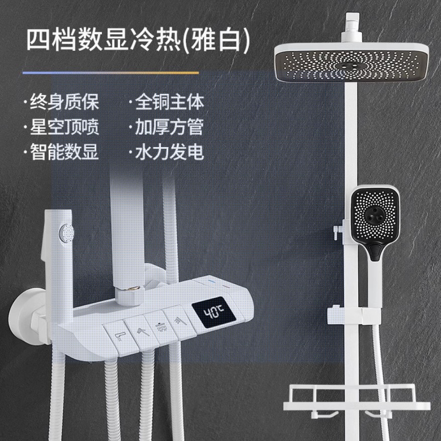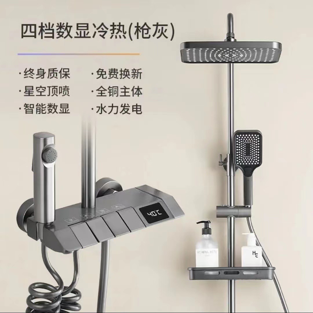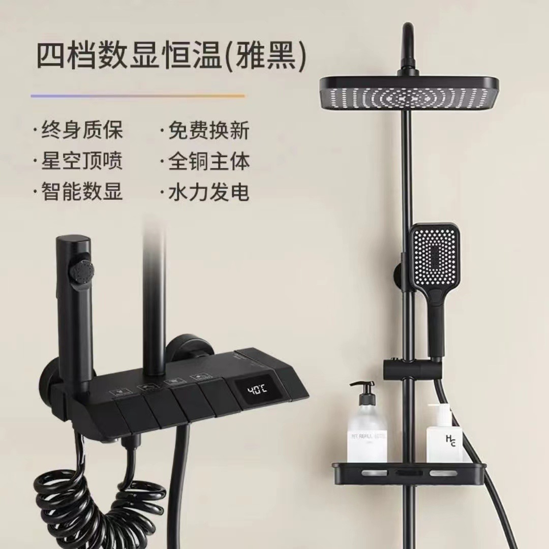 피아노 샤워 세트 가정용 디지털 디스플레이 온도 조절 욕실 샤워기 가압 자동 온도 조절 고급 황동 샤워기