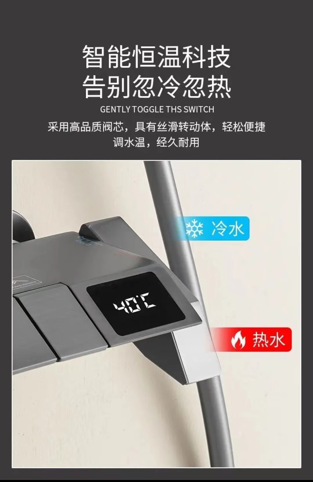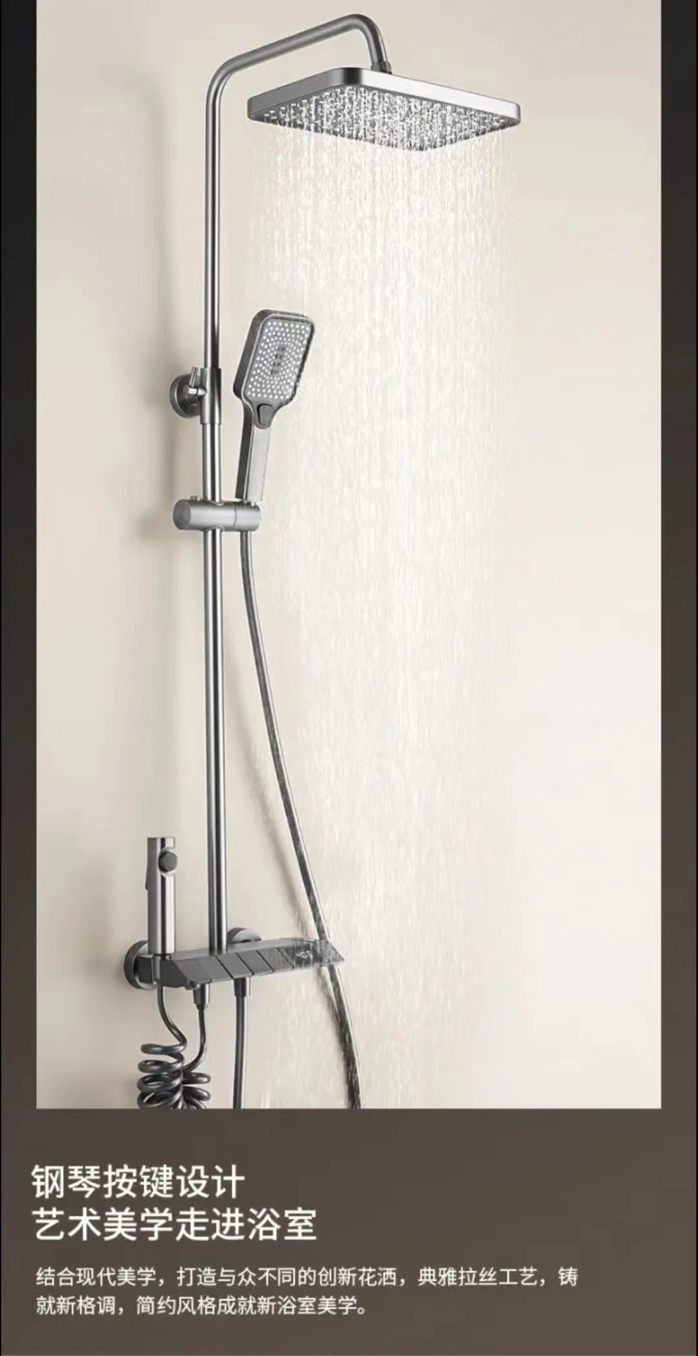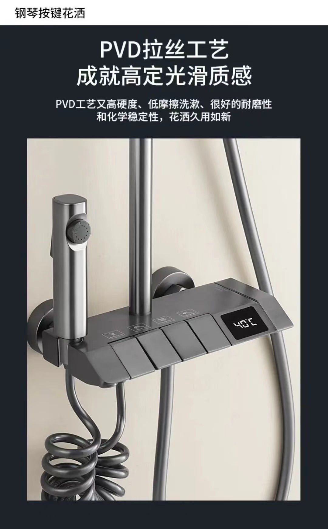 피아노 샤워 세트 가정용 디지털 디스플레이 온도 조절 욕실 샤워기 가압 자동 온도 조절 고급 황동 샤워기