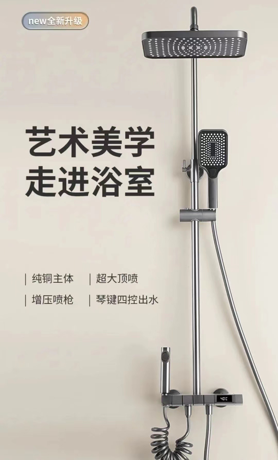 피아노 샤워 세트 가정용 디지털 디스플레이 온도 조절 욕실 샤워기 가압 자동 온도 조절 고급 황동 샤워기스토어 가기