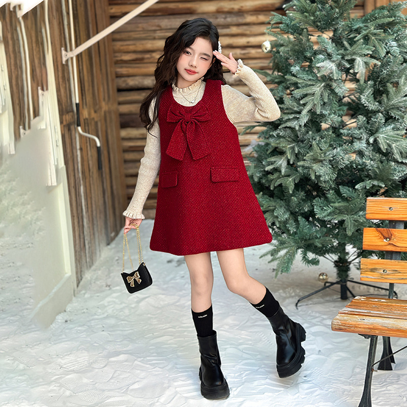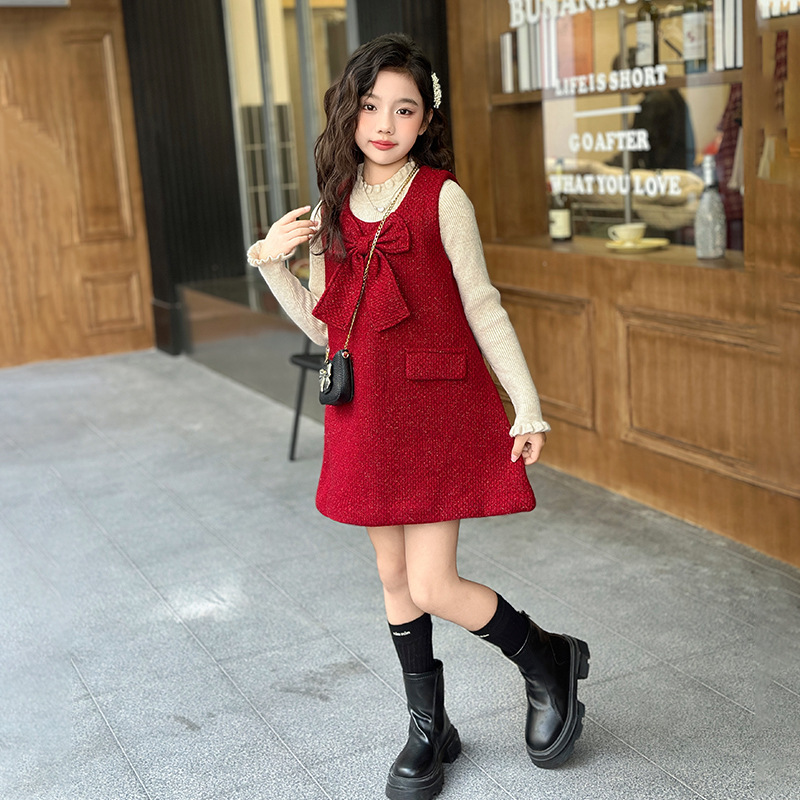 여자 가을 겨울 연례 원피스 2024 새로운 패션 소녀 한국 스타일 어린이 서양식 원피스 신년 원피스 패션스토어 가기