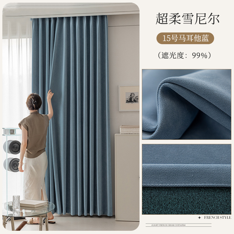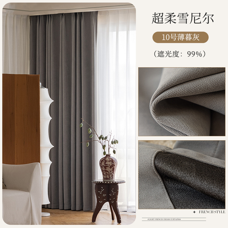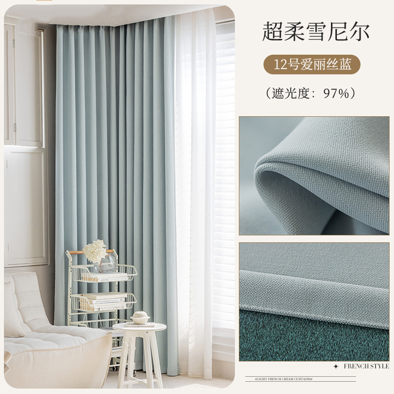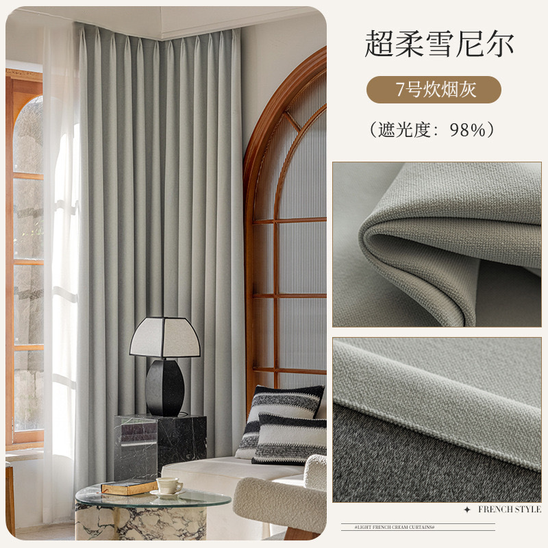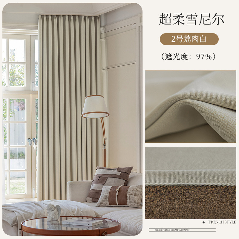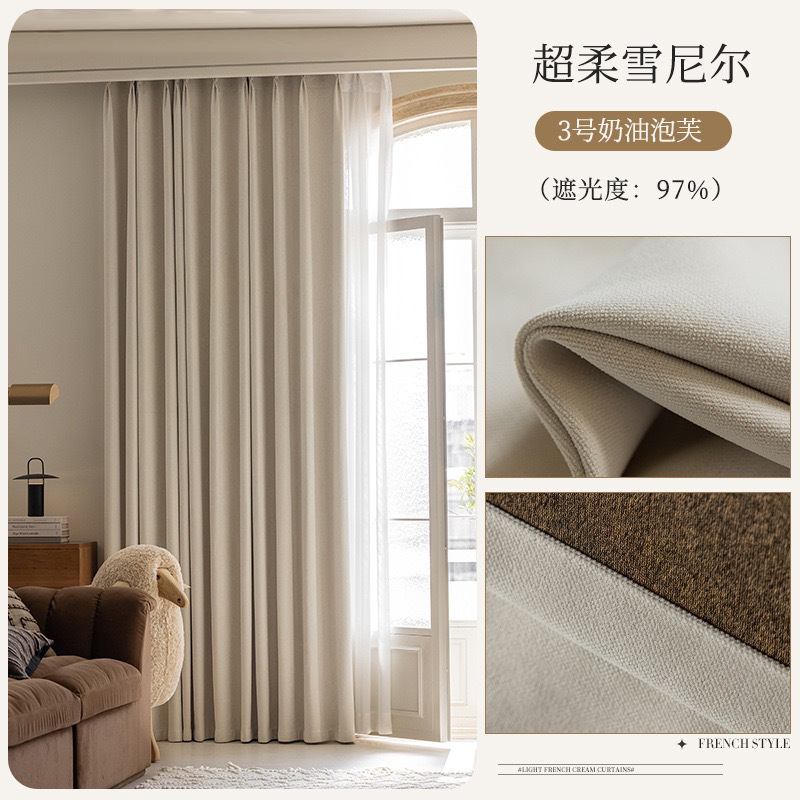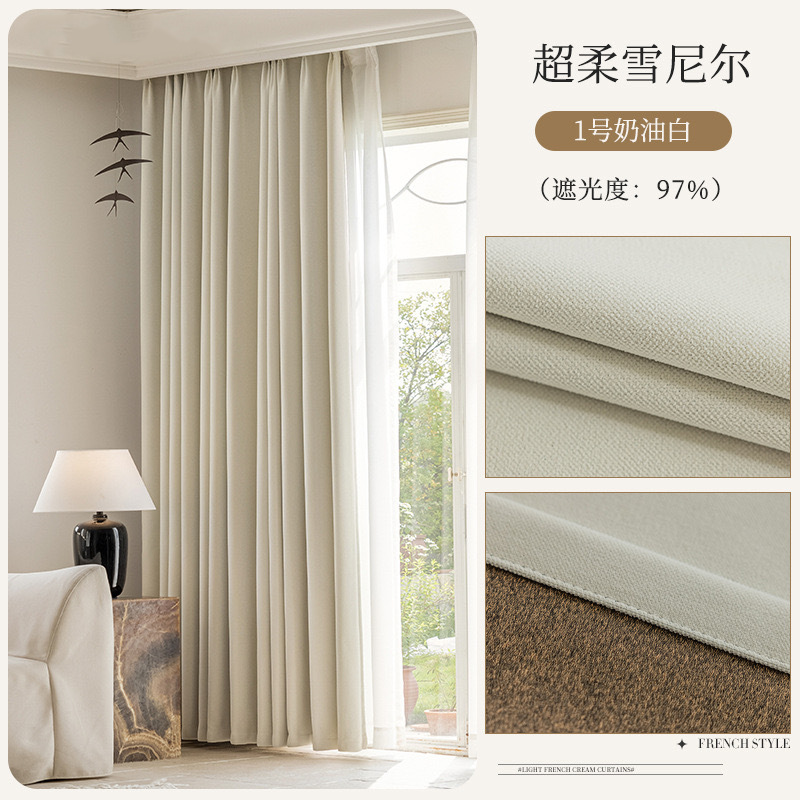 새로운 슈퍼 소프트 셔닐 블랙 아웃 마스터가 두껍게 전체 블랙 아웃 커튼 엄마와 베이비 그레이드 라이트 럭셔리 프랑스 크림 커튼스토어 가기