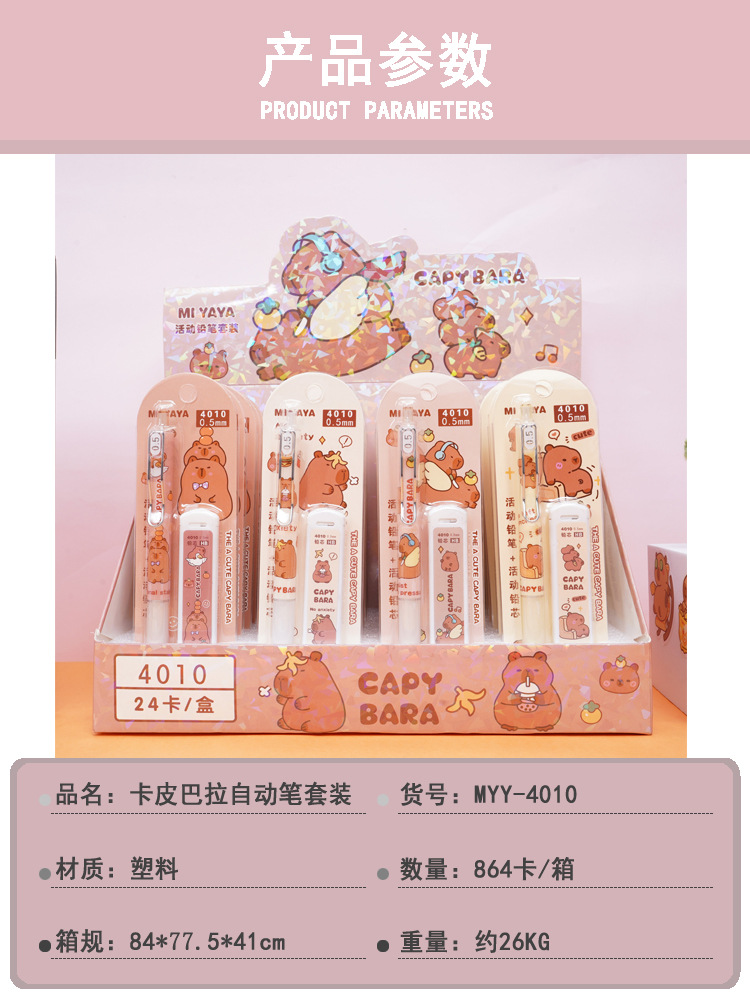 새로운 MYY-4010 Capibala Capibala 자동 연필 세트 학생 그리기 시험 끊기 쉽지 않은 절단 없음스토어 가기