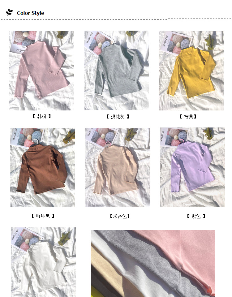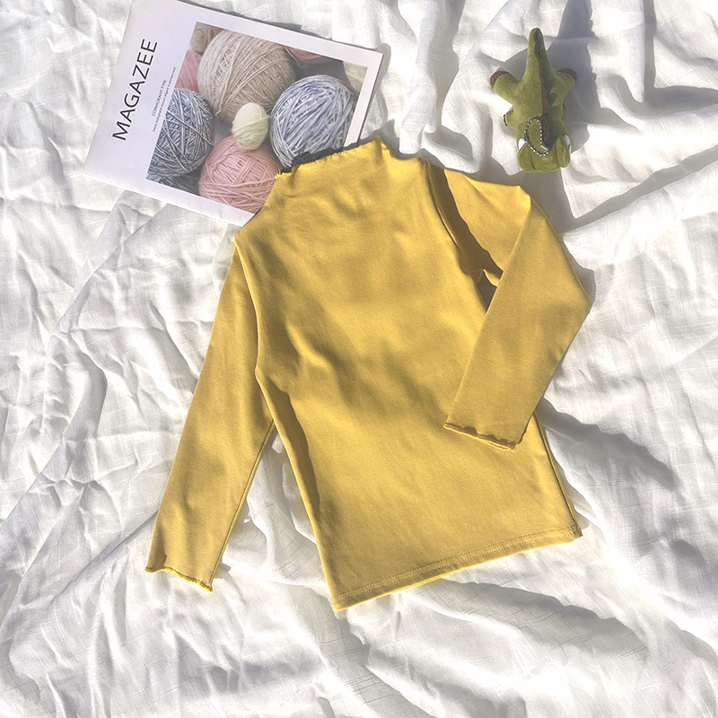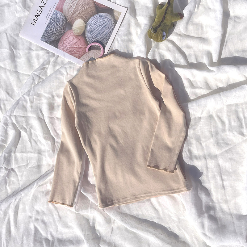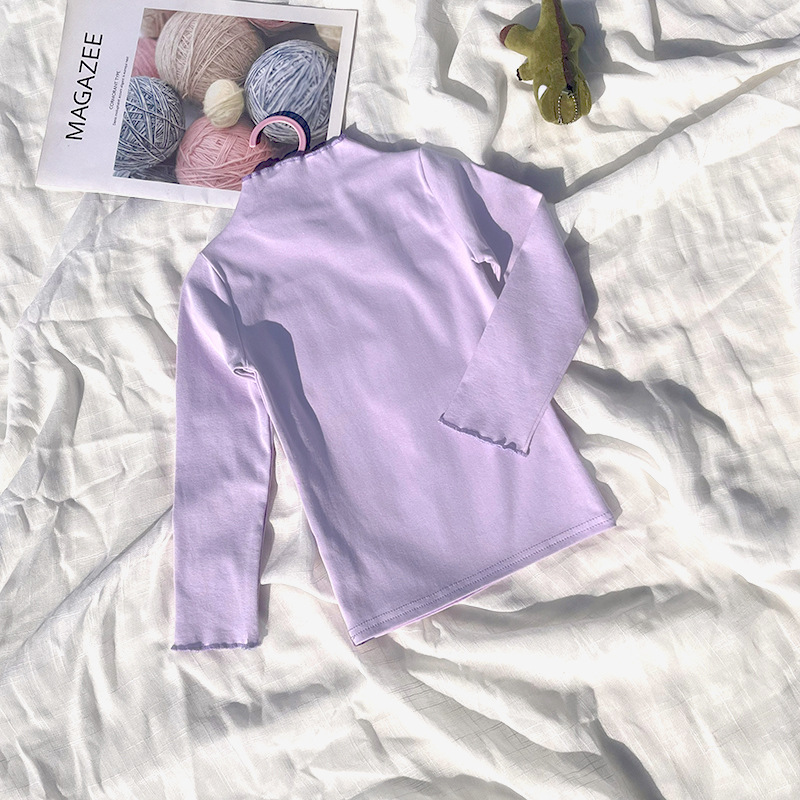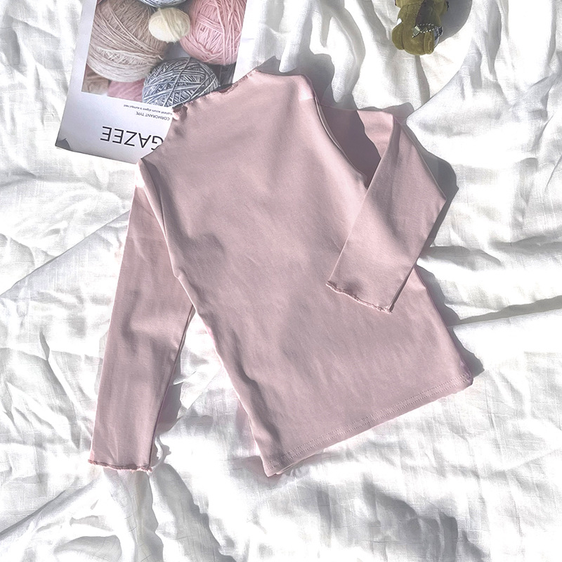 A급 여아용 러플 엘라스틱 긴팔 이너웨어 순면 단색 레이스 이너웨어 달콤하고 귀여운 스타일 상의스토어 가기