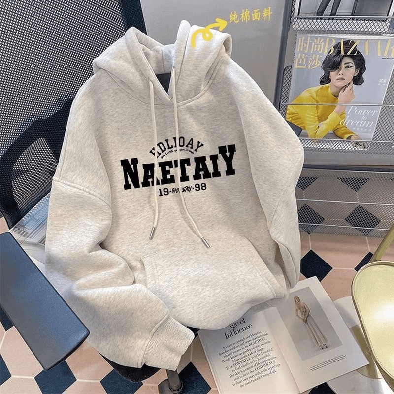 • 밝은 회색 NAETA 문자 후드 얇은 스타일