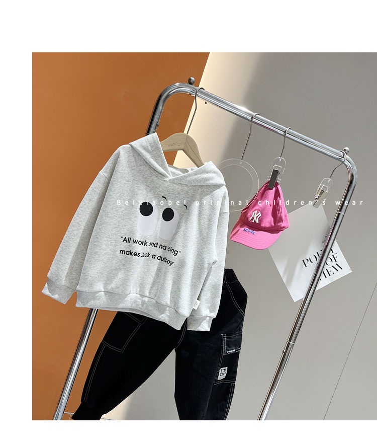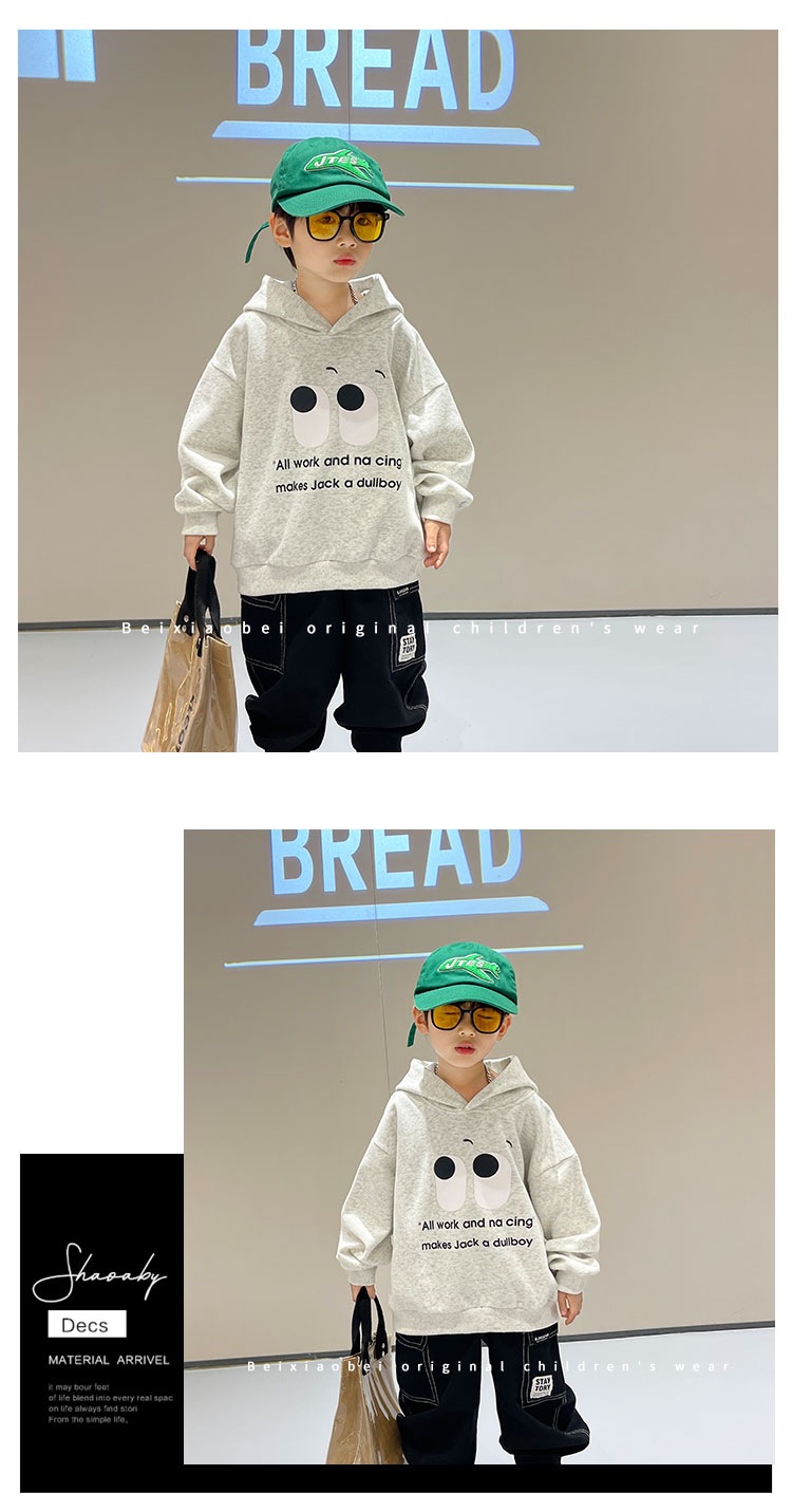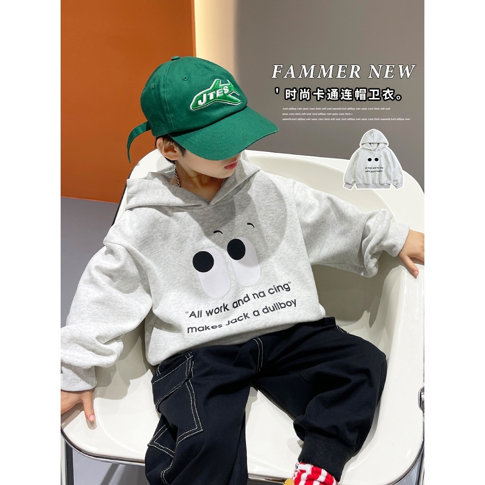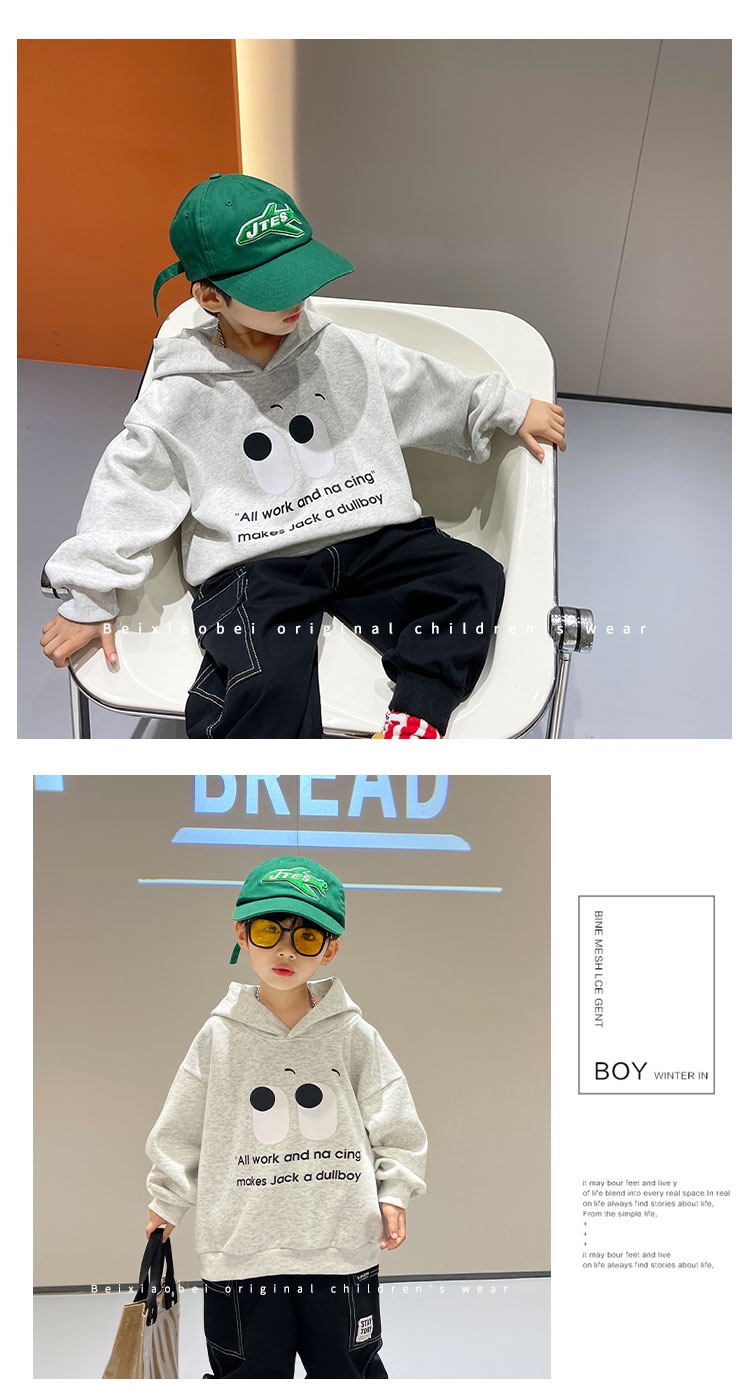 봄과 가을 새로운 재미있는 어린이 얇은 후드 스웨트 셔츠 소년과 소녀 패션 만화 회색 기모 탑스토어 가기