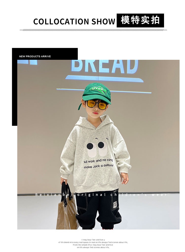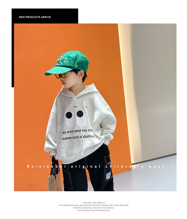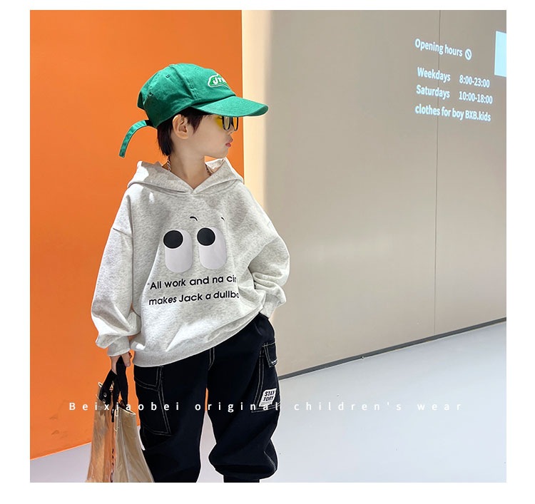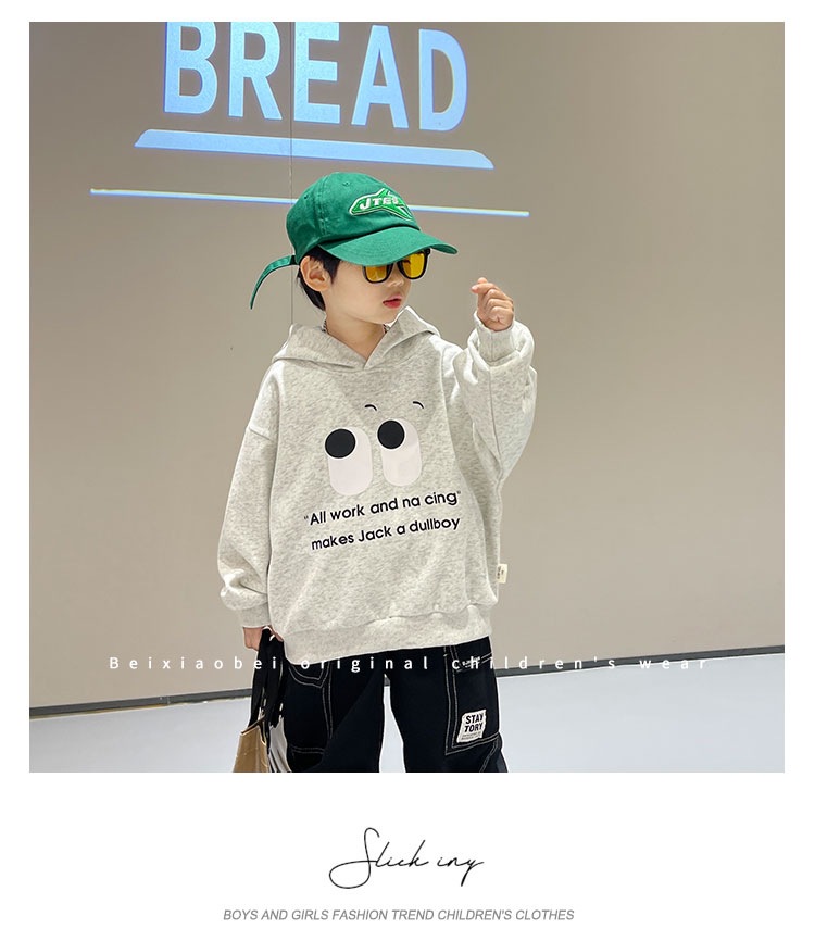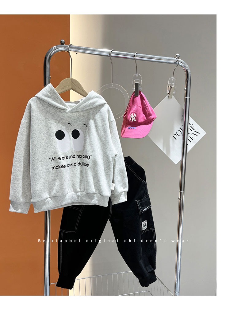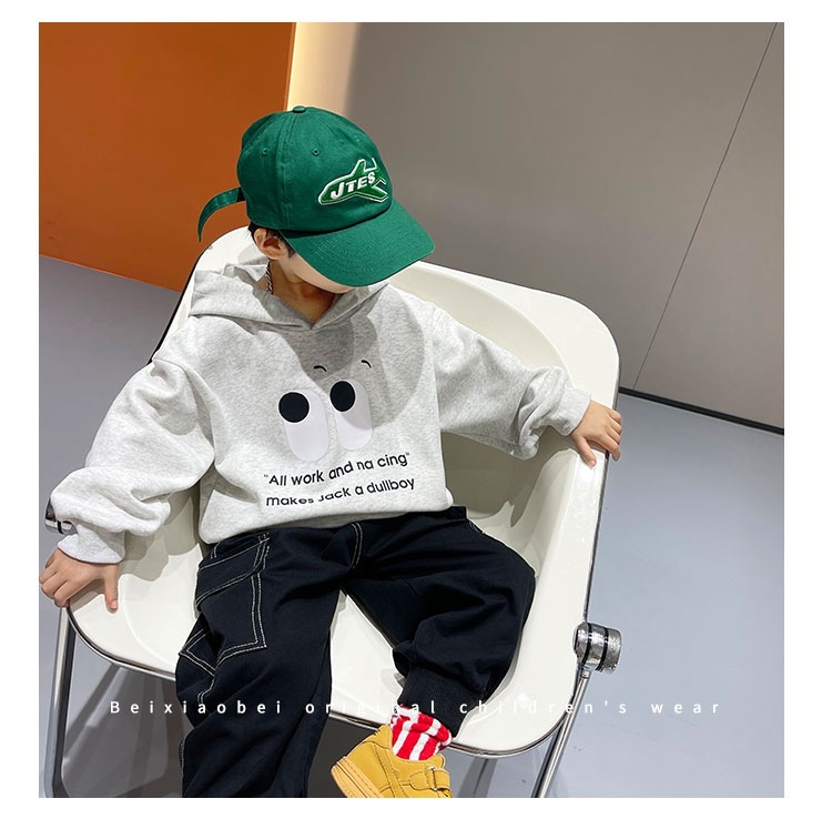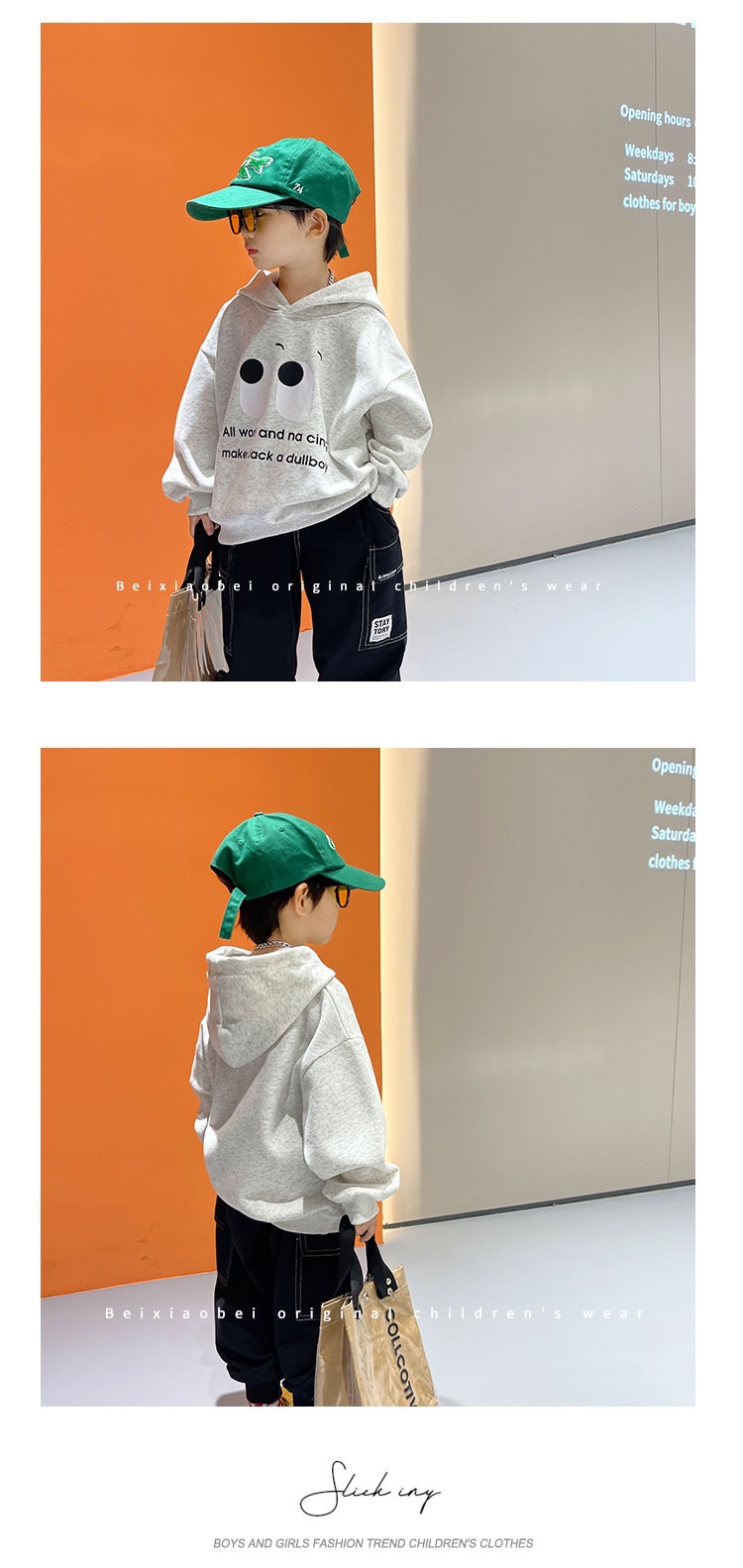 봄과 가을 새로운 재미있는 어린이 얇은 후드 스웨트 셔츠 소년과 소녀 패션 만화 회색 기모 탑스토어 가기