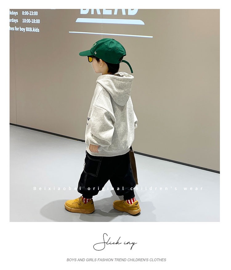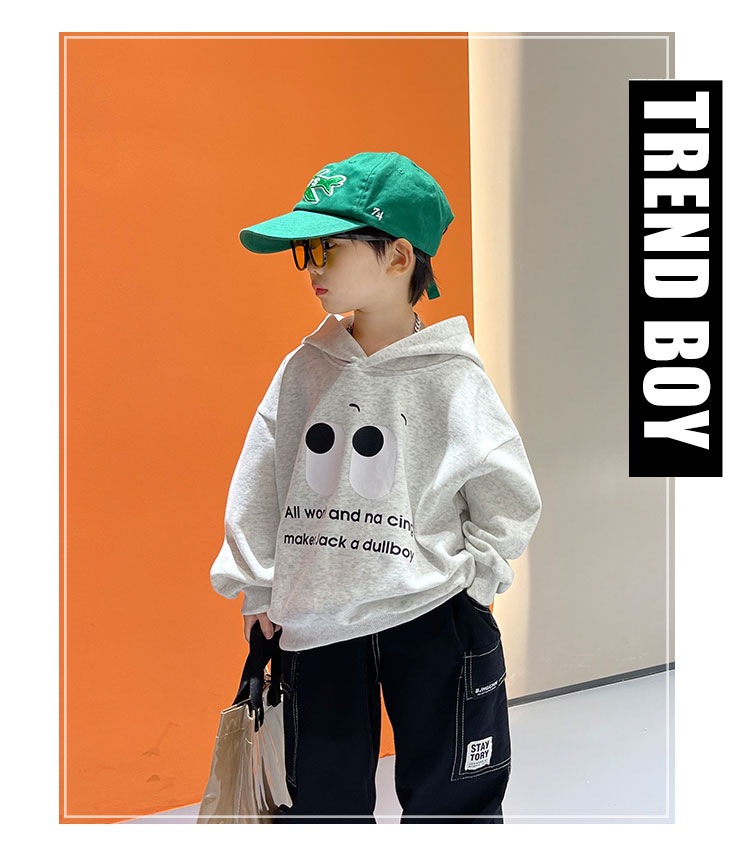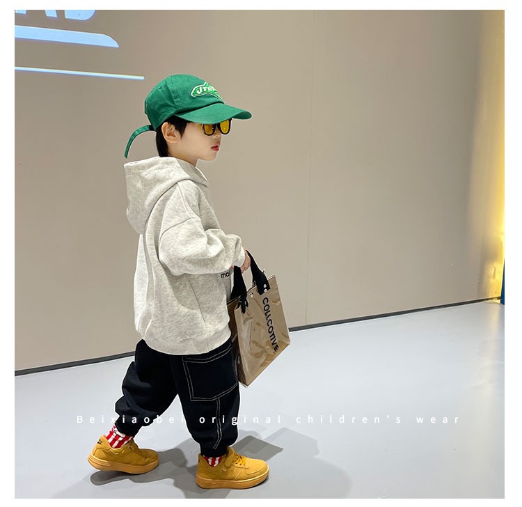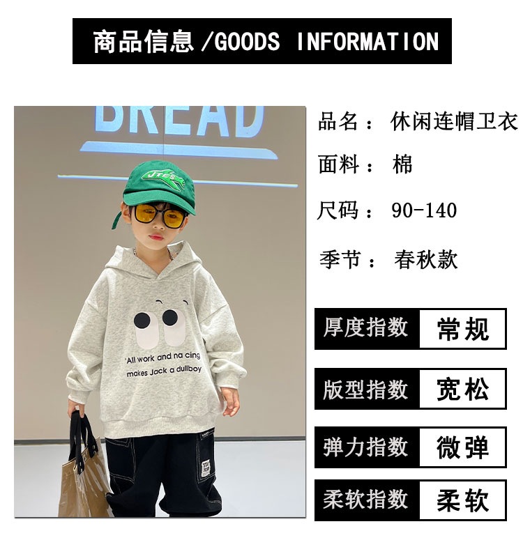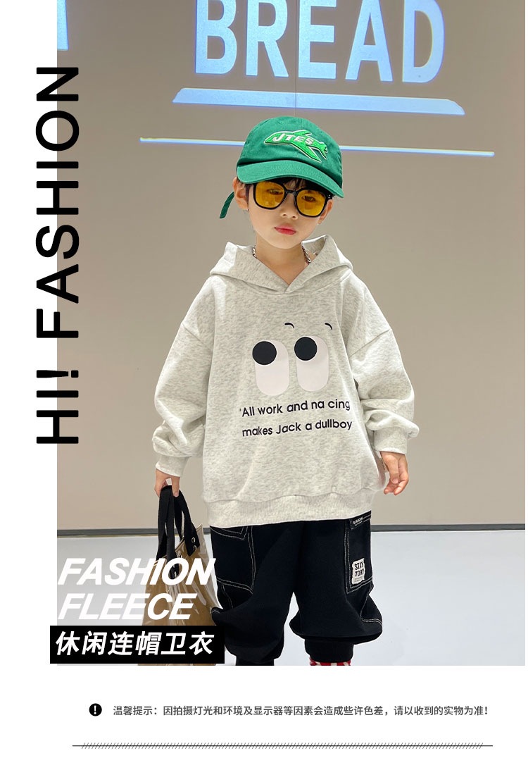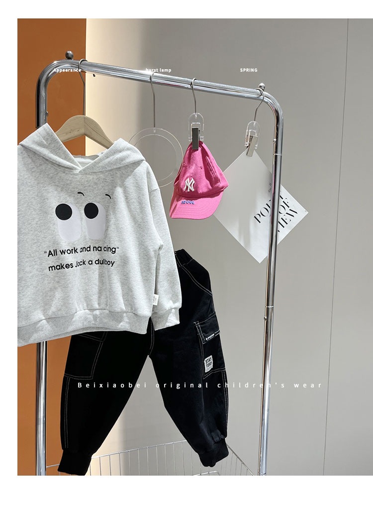 봄과 가을 새로운 재미있는 어린이 얇은 후드 스웨트 셔츠 소년과 소녀 패션 만화 회색 기모 탑스토어 가기