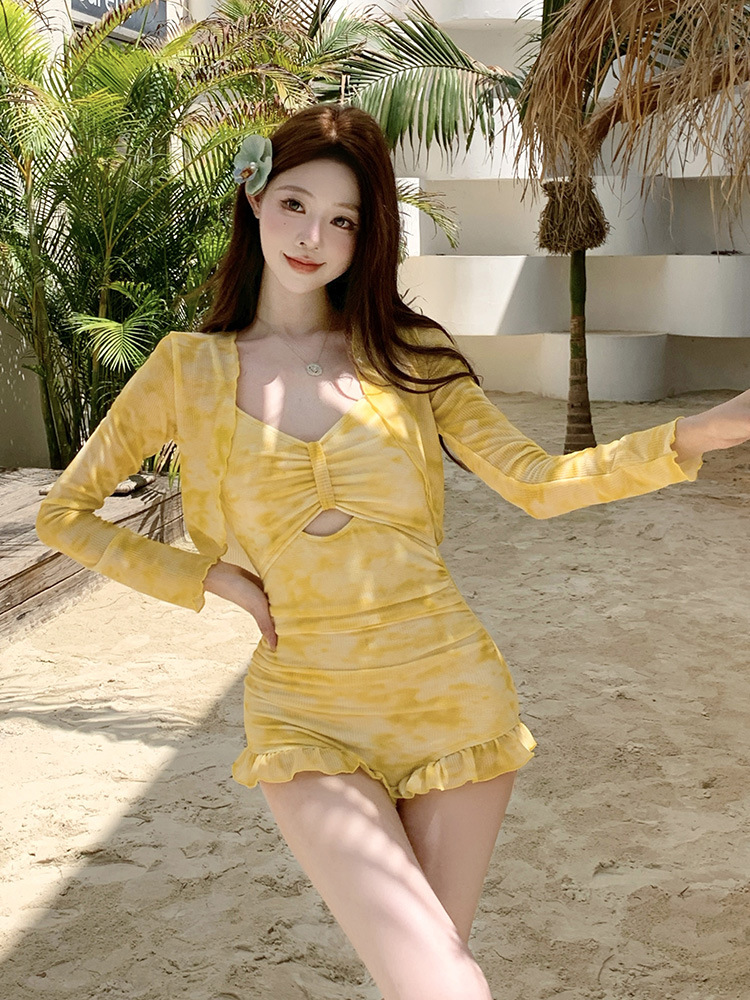 새로운 순수한 욕망 하이 엔드 센스 인터넷 인기있는 스타일 긴팔 보수적 인 육체 커버 슬리밍 작은 가슴 뜨거운 봄 휴가 수영복 여성용