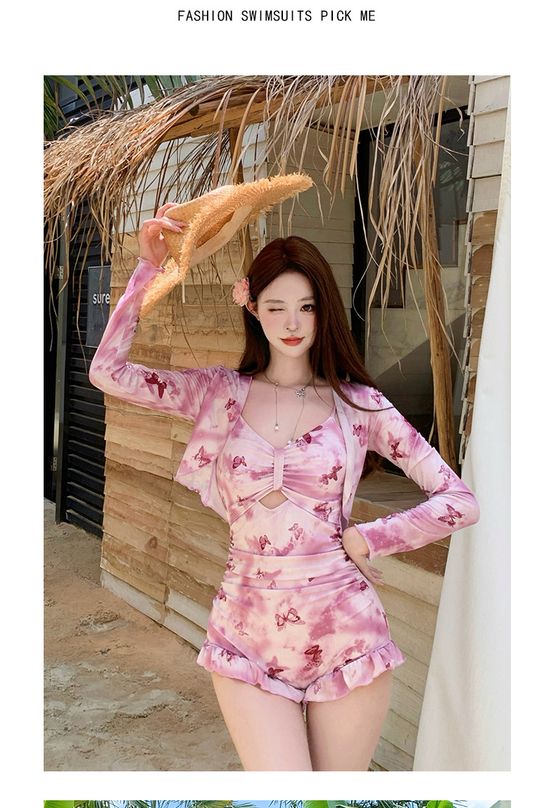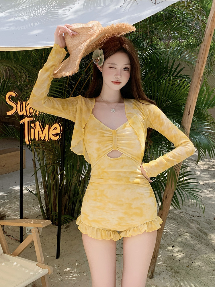 새로운 순수한 욕망 하이 엔드 센스 인터넷 인기있는 스타일 긴팔 보수적 인 육체 커버 슬리밍 작은 가슴 뜨거운 봄 휴가 수영복 여성용스토어 가기