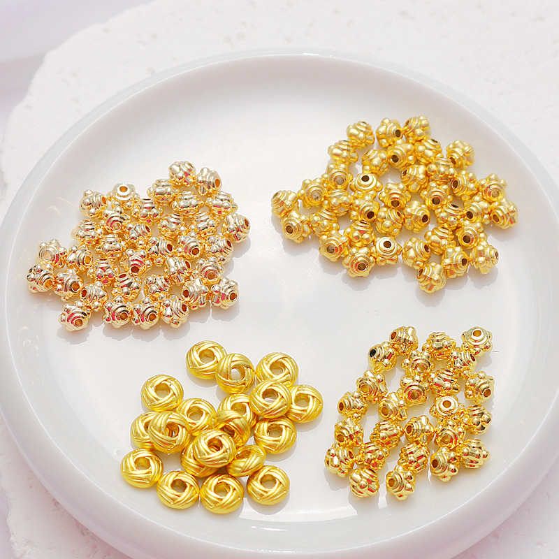 18K包金保色哑金灯笼隔珠麻花散珠DIY手链项链手工饰品配件编绳