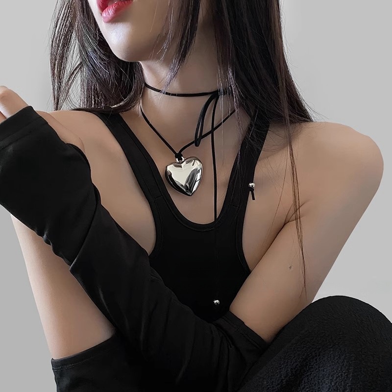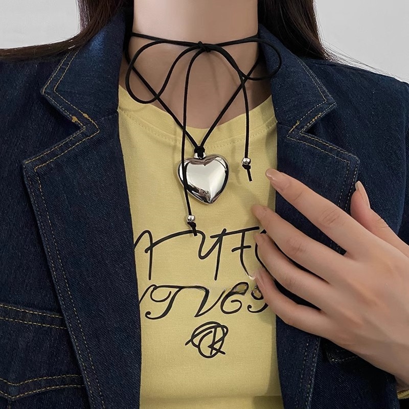 니치 라이트 럭셔리 사랑 하트 쌓인 목걸이 여성의 2024 새로운 폭발성 가죽 성격 뜨거운 소녀 순수한 욕망 스타일 쇄골 체인