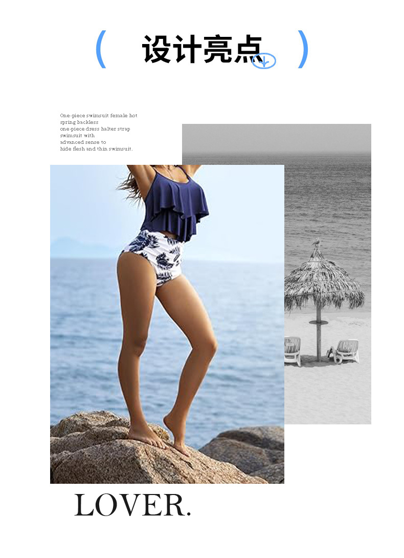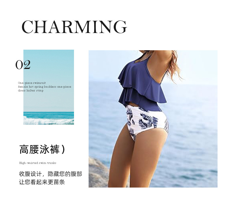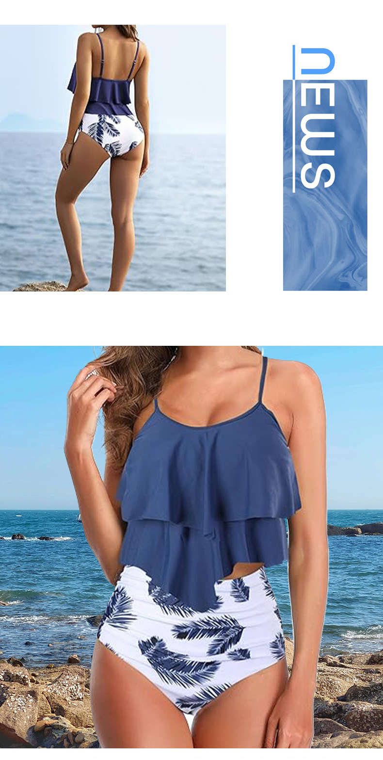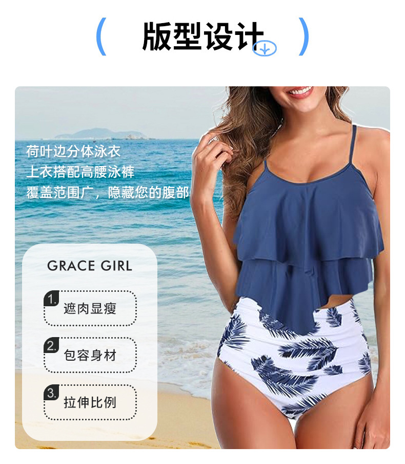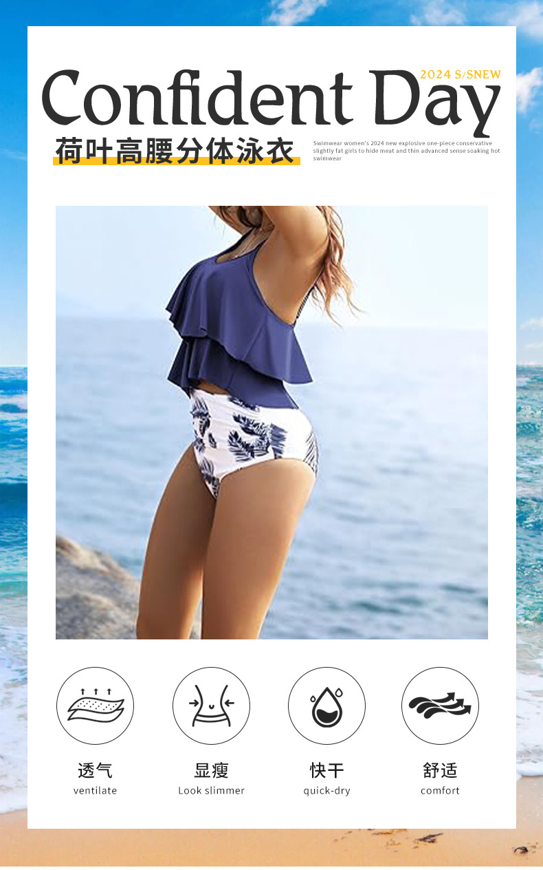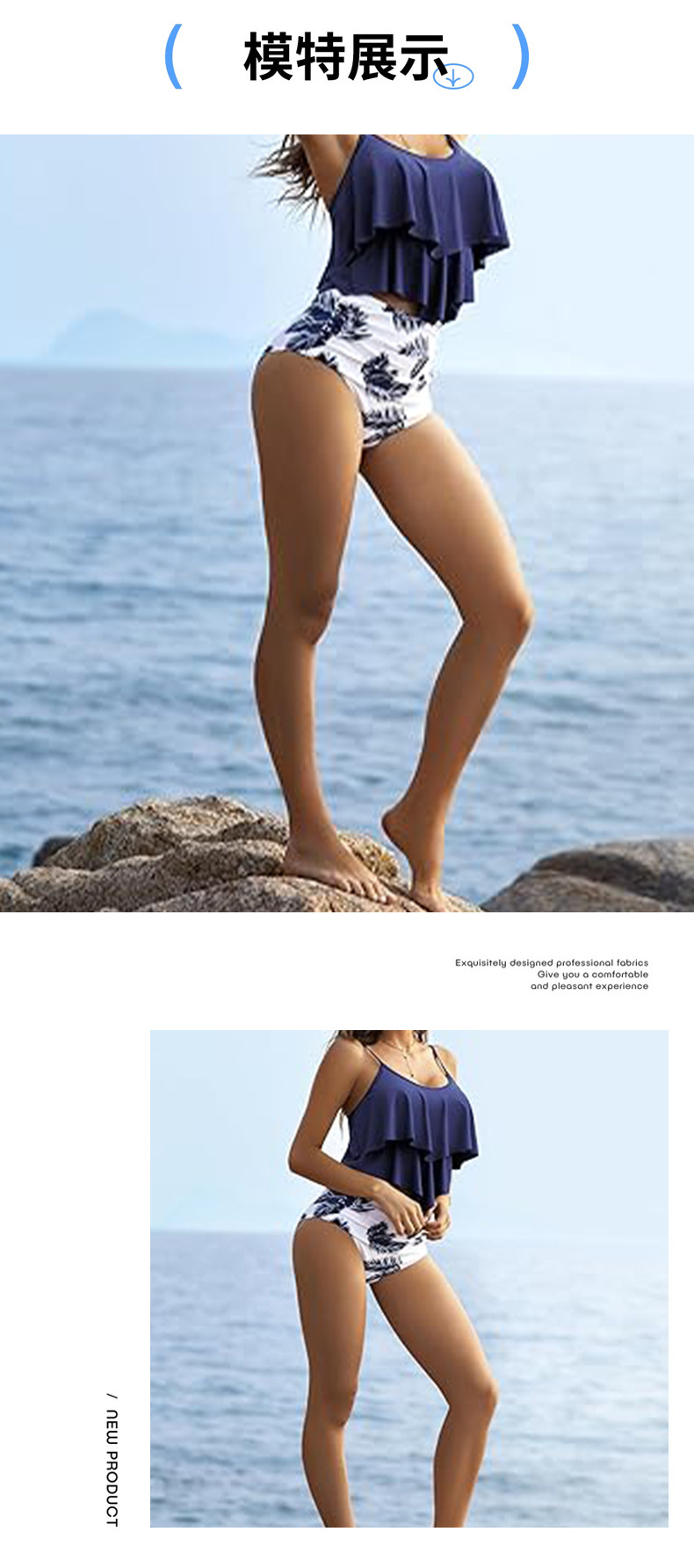 유럽과 미국의 대외 무역 2024 새로운 분할 플러스 사이즈 그린 러플 비키니 스트랩 여성을위한 높은 허리 분할 수영복