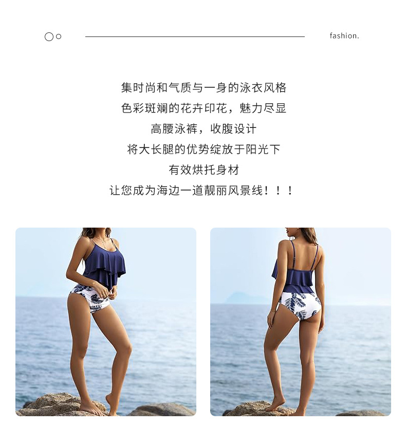 유럽과 미국의 대외 무역 2024 새로운 분할 플러스 사이즈 그린 러플 비키니 스트랩 여성을위한 높은 허리 분할 수영복스토어 가기