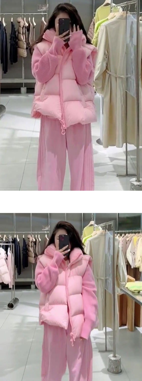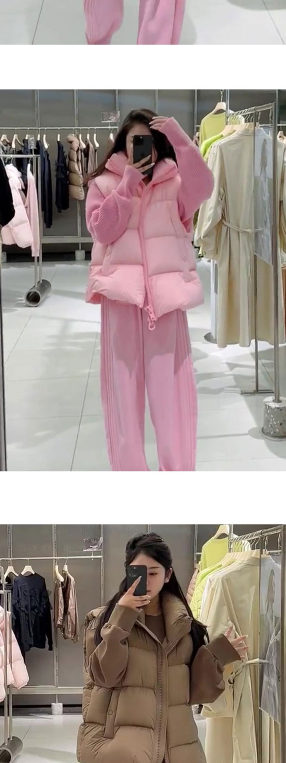 2024 겨울 패션 핑크 면 패딩 재킷 조끼 한국 캐주얼 여성 하이 엔드 샤넬 스타일 재킷 트렌디 탑스토어 가기