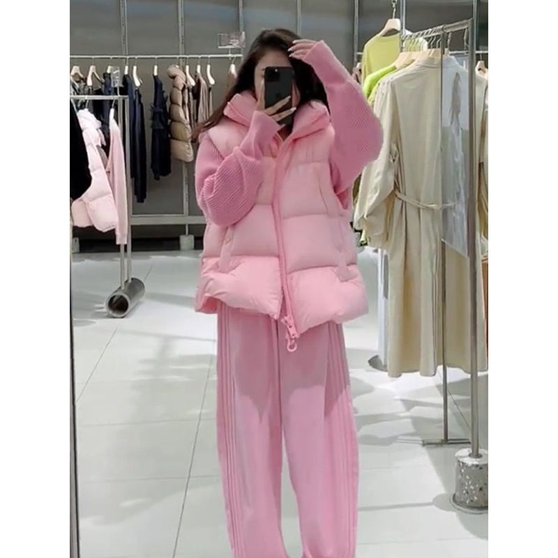 2024 겨울 패션 핑크 면 패딩 재킷 조끼 한국 캐주얼 여성 하이 엔드 샤넬 스타일 재킷 트렌디 탑