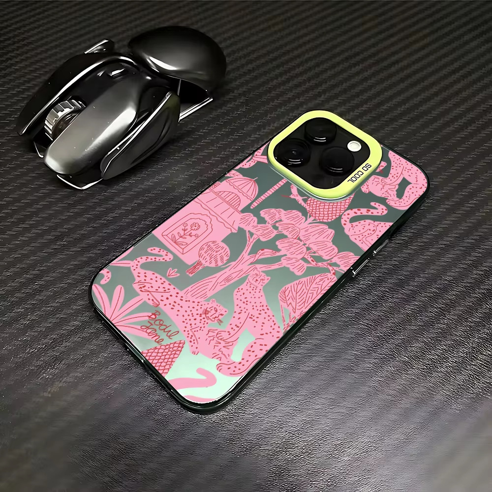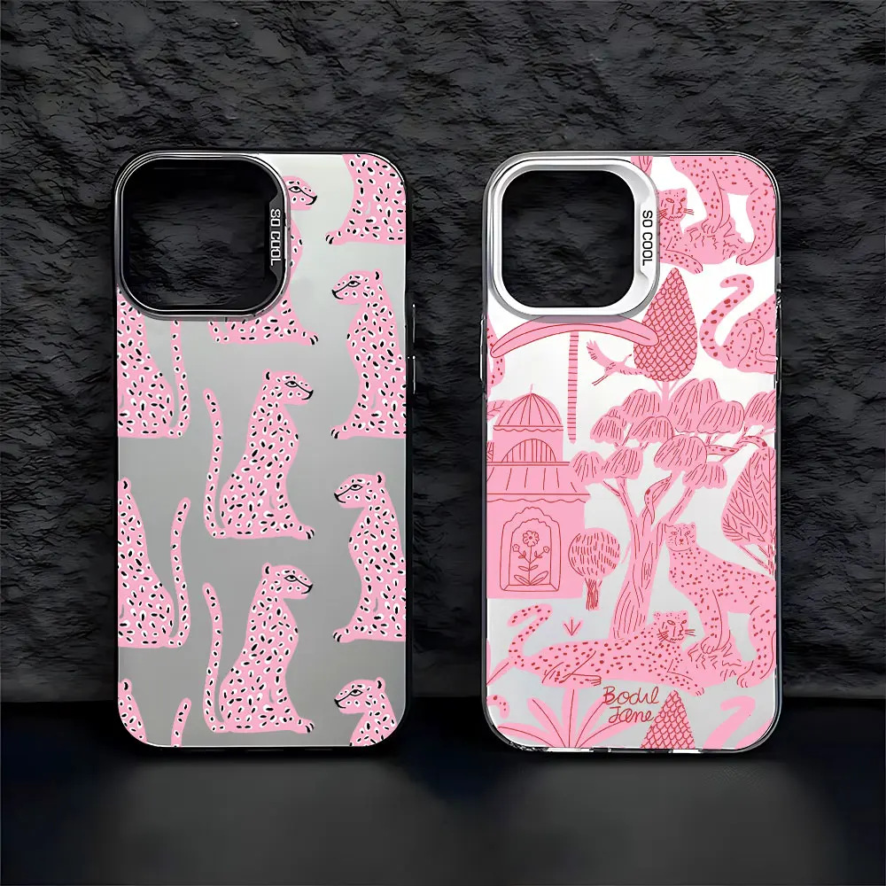 핑크 레오파드 iPhone16Pro 전화 케이스 14/13 레이저 케이스 12 Apple 11XsMax 하드 ProMa