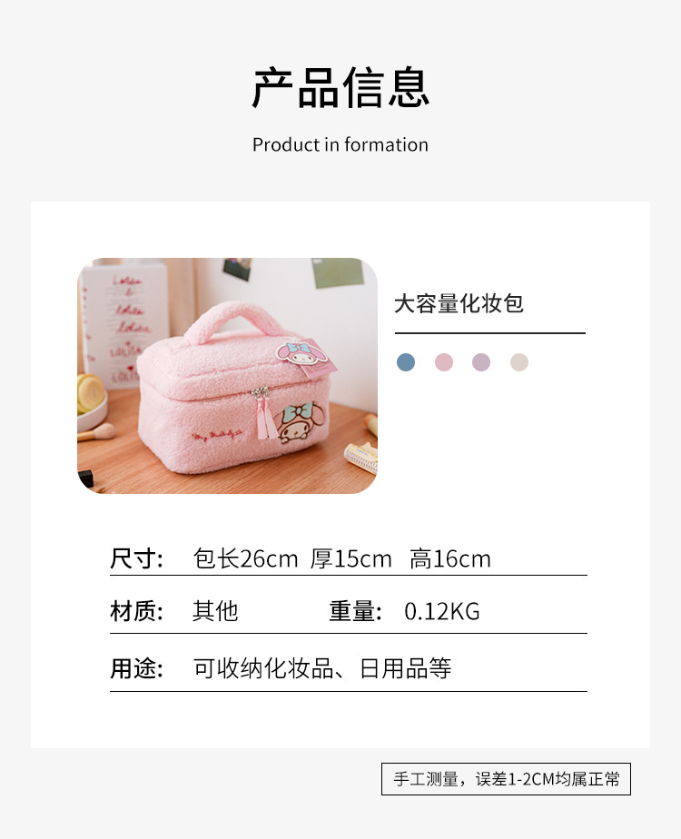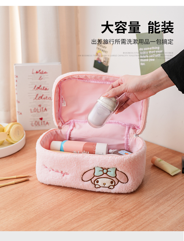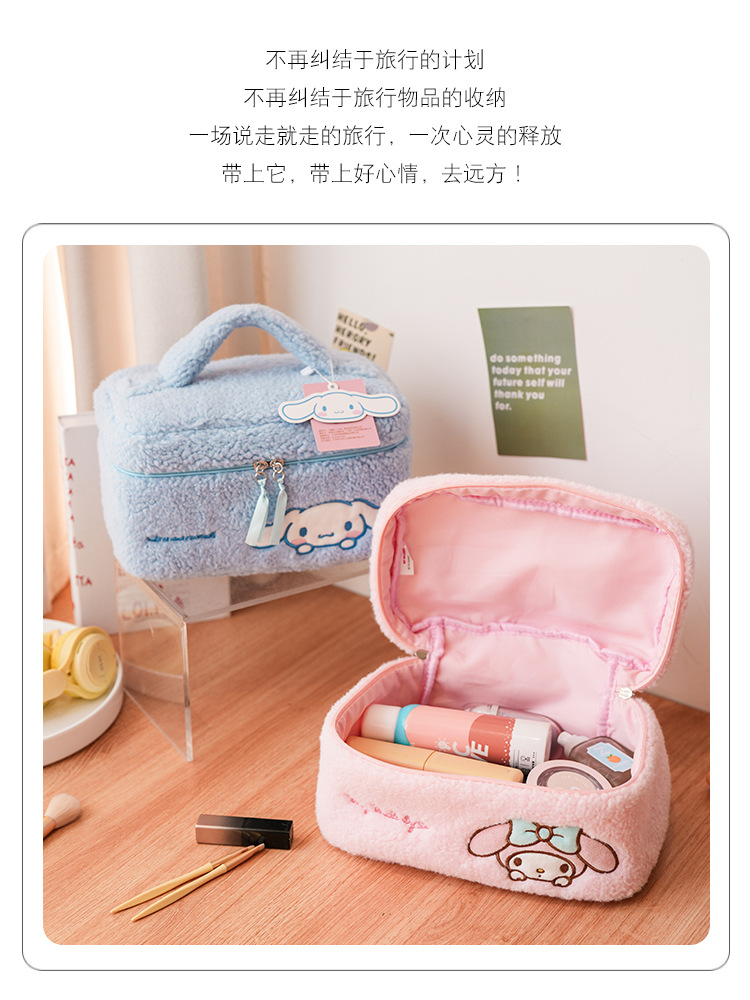 산리오 테디 벨벳 자수 화장품 가방 만화 대용량 높은 색상 가치 고급 가을 및 겨울 봉제 보관 가방스토어 가기