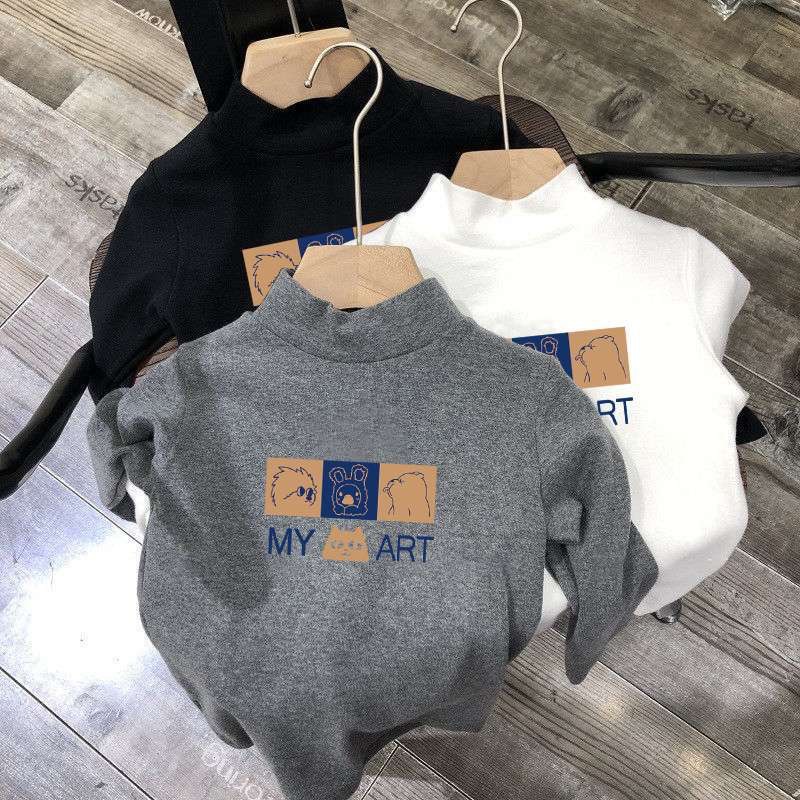 URBANSHOW 어린이 벨벳베이스 셔츠 가을 및 겨울 새 소녀 하프 하이 칼라 중대형 어린이 따뜻한 캐주얼 탑