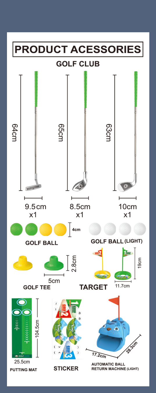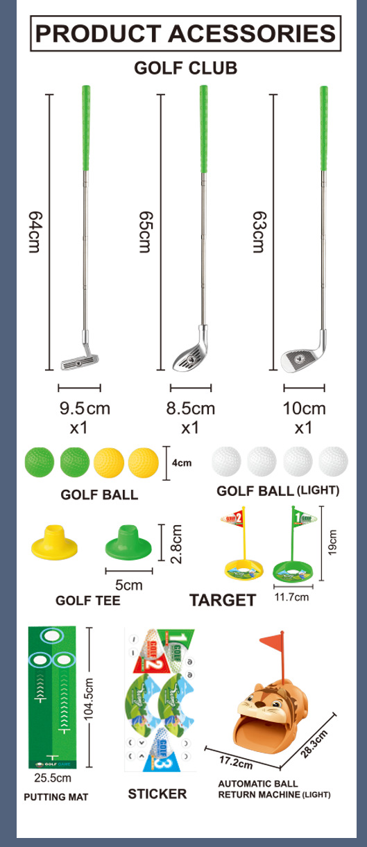 产品名称:蓝色/黑绿色高尔夫可回弹套装