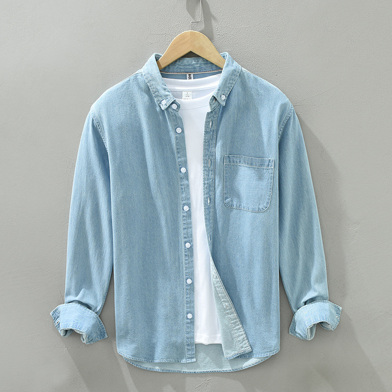 8839 데님 셔츠 남성 긴팔 패션 느슨한 일본 신선한 트렌드 캐주얼 셔츠 코트 제조 업체