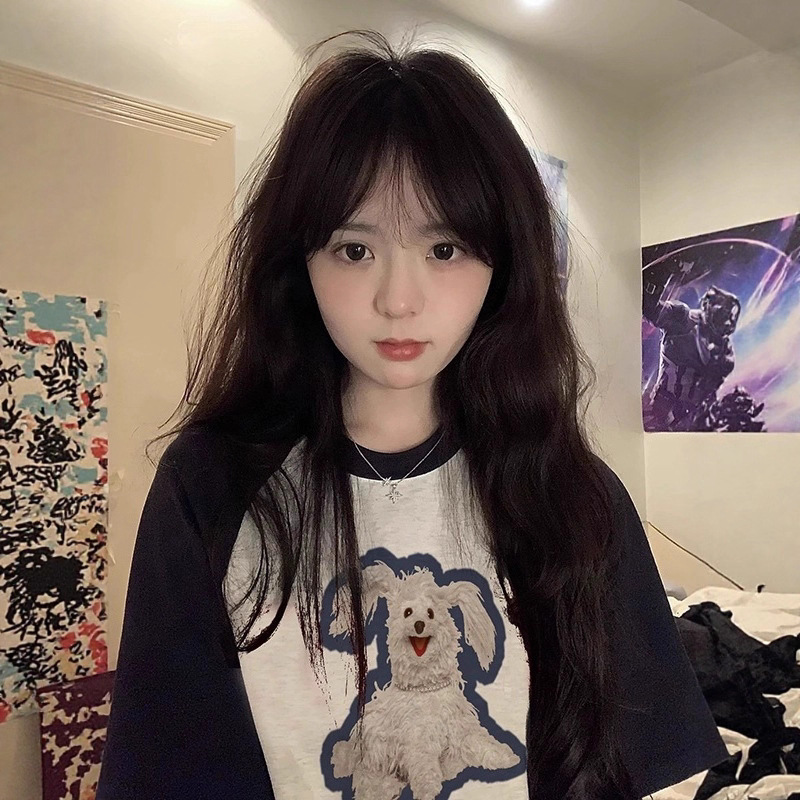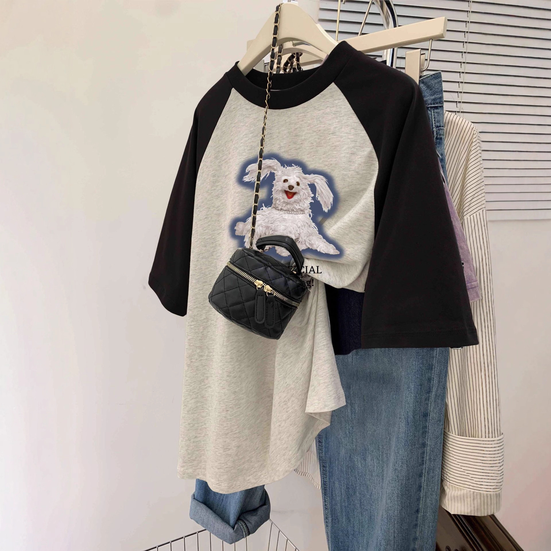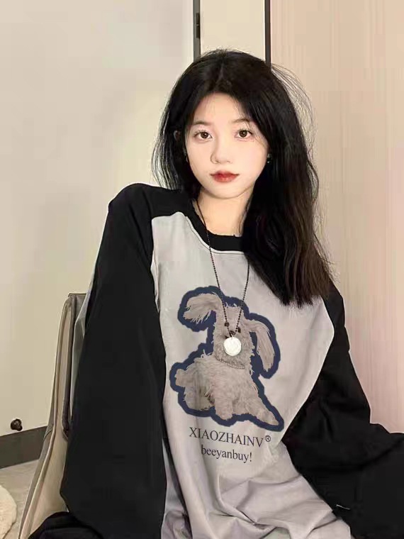 미국 스타일 레트로 라글란 긴 소매 티셔츠 여성의 봄과 가을 얇은 순수 면 느슨한 대형 버전 중학교 고등학교 학생 트렌디 탑
