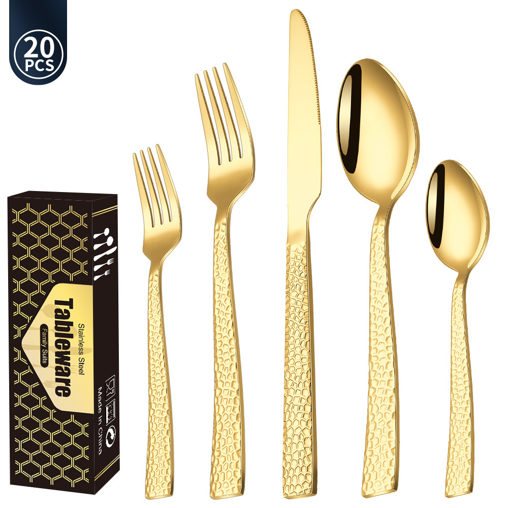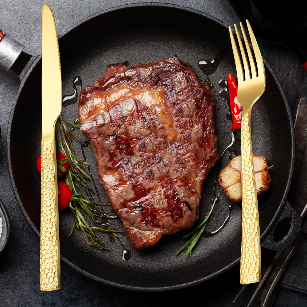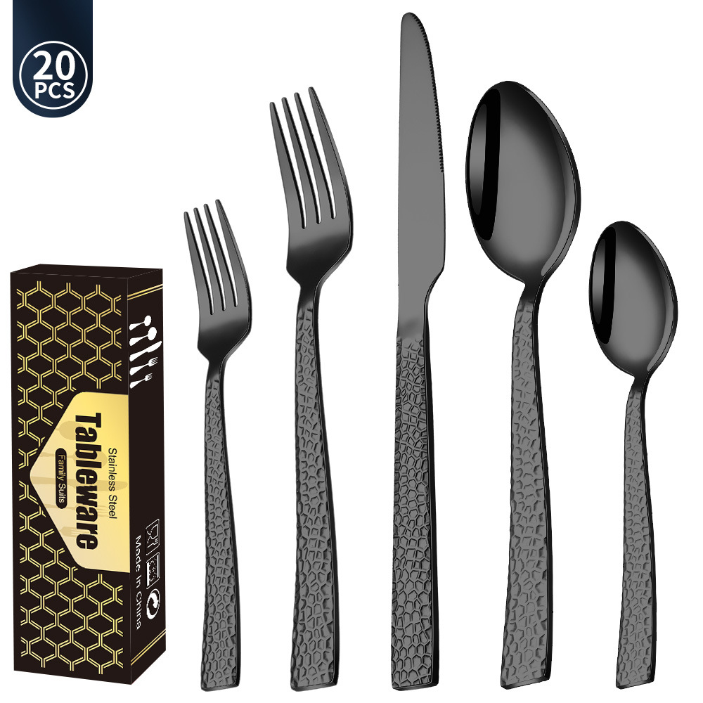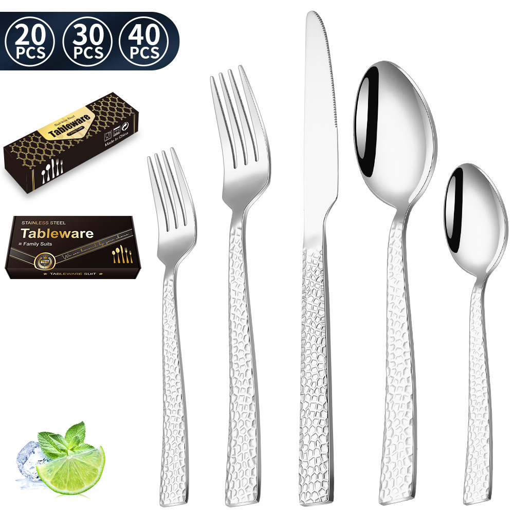 아마존 폭발성 스퀘어 핸들 망치 나이프와 포크 스푼 세트 식기 세척기 안전 스테인레스 스틸 웨스턴 식기 스테이크 나이프와 포크