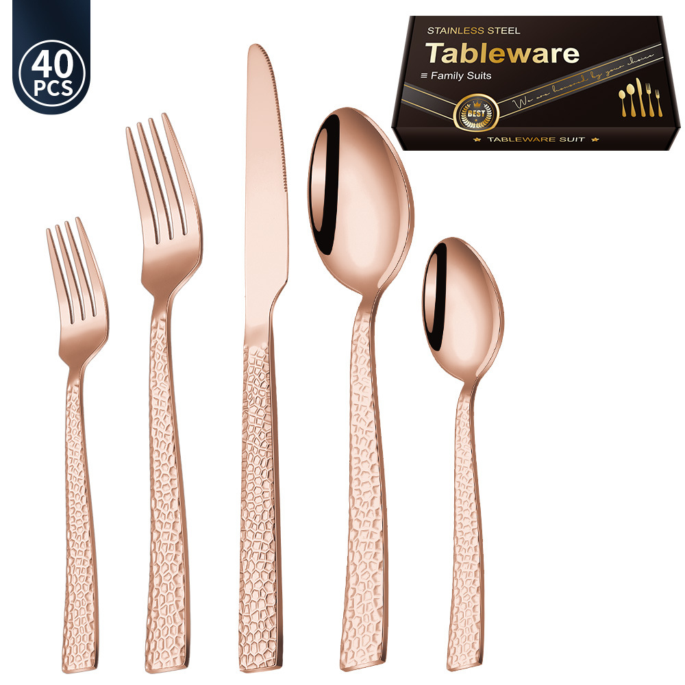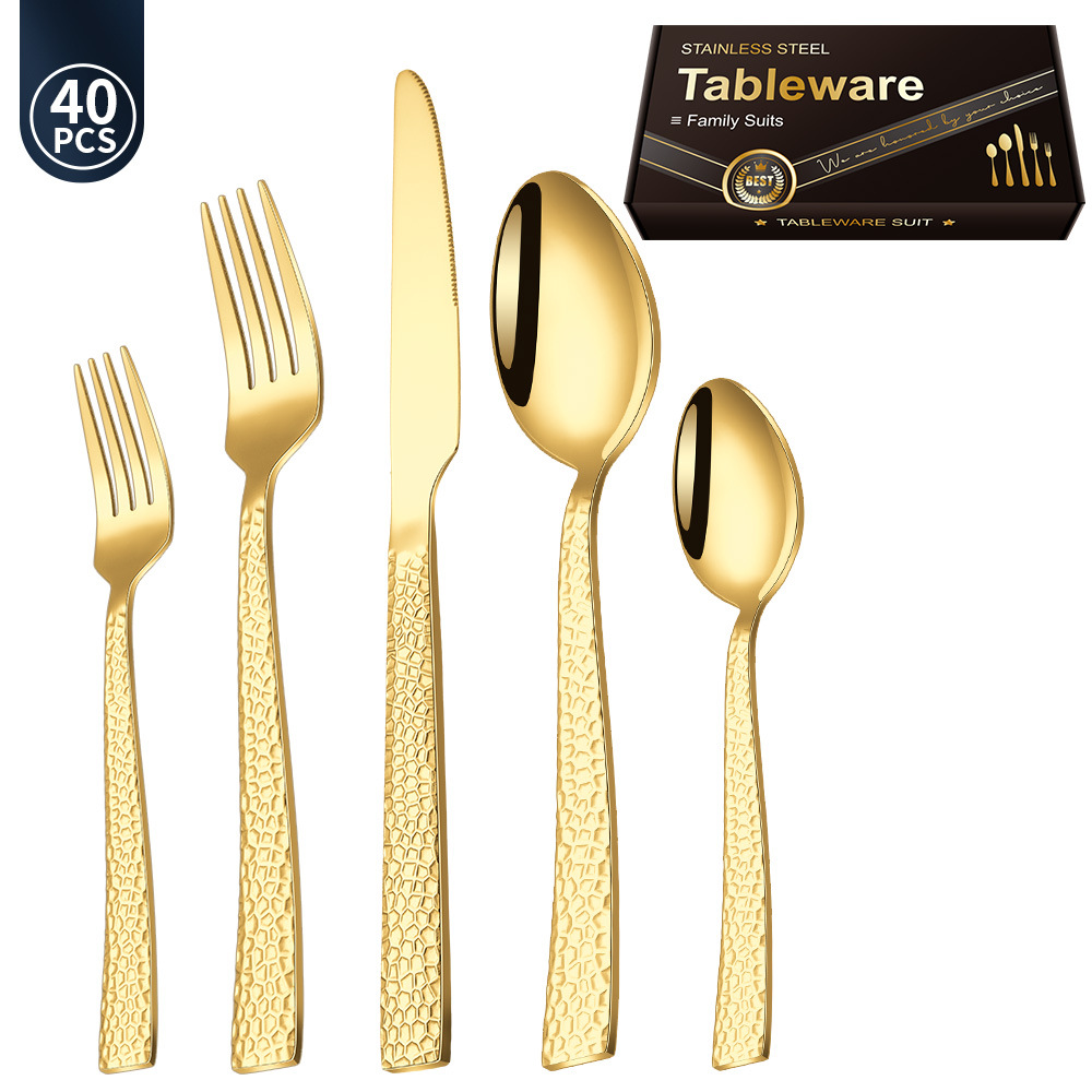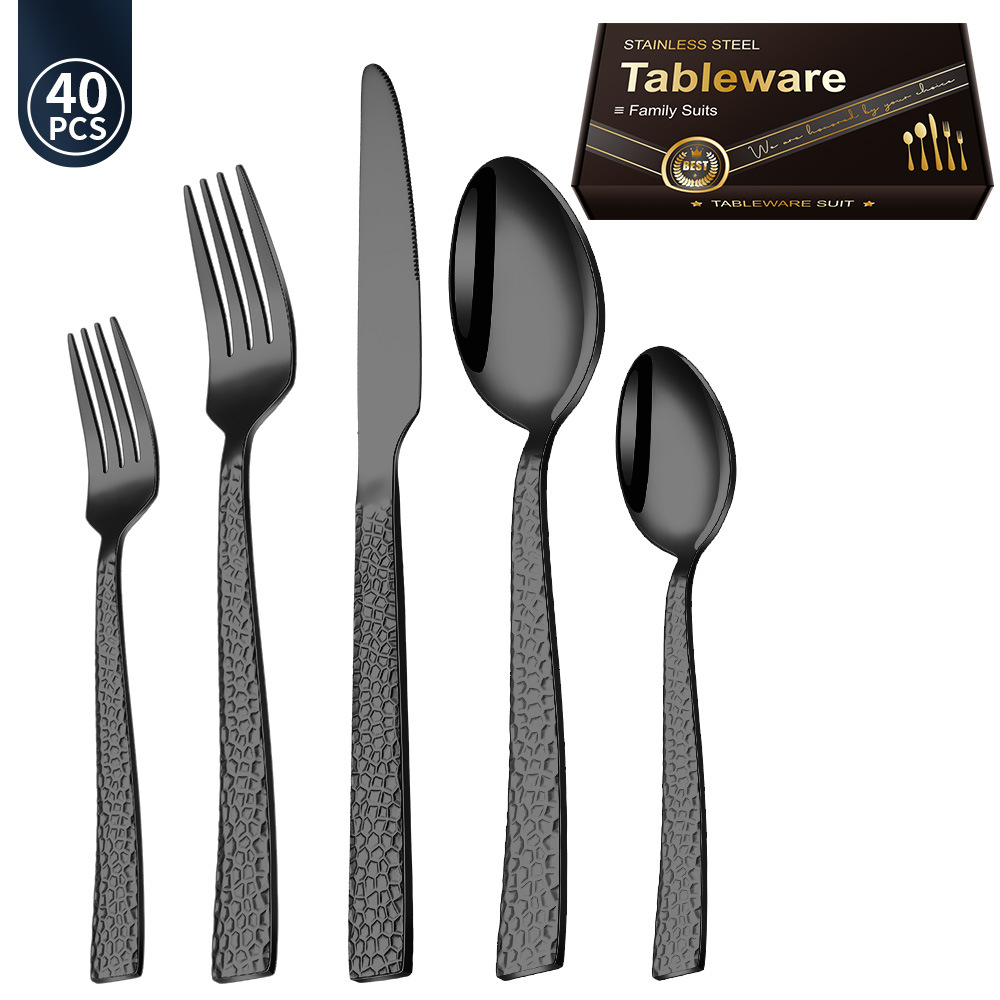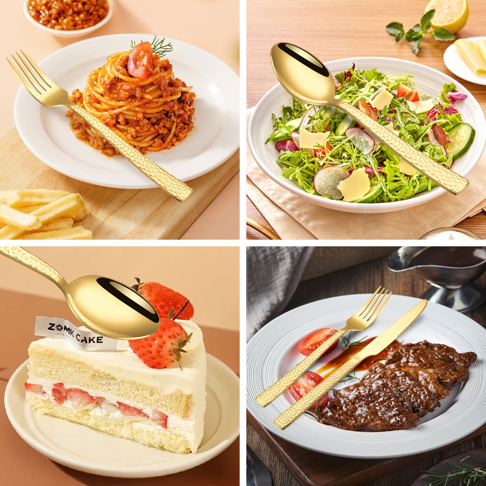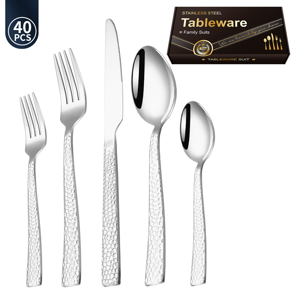 아마존 폭발성 스퀘어 핸들 망치 나이프와 포크 스푼 세트 식기 세척기 안전 스테인레스 스틸 웨스턴 식기 스테이크 나이프와 포크