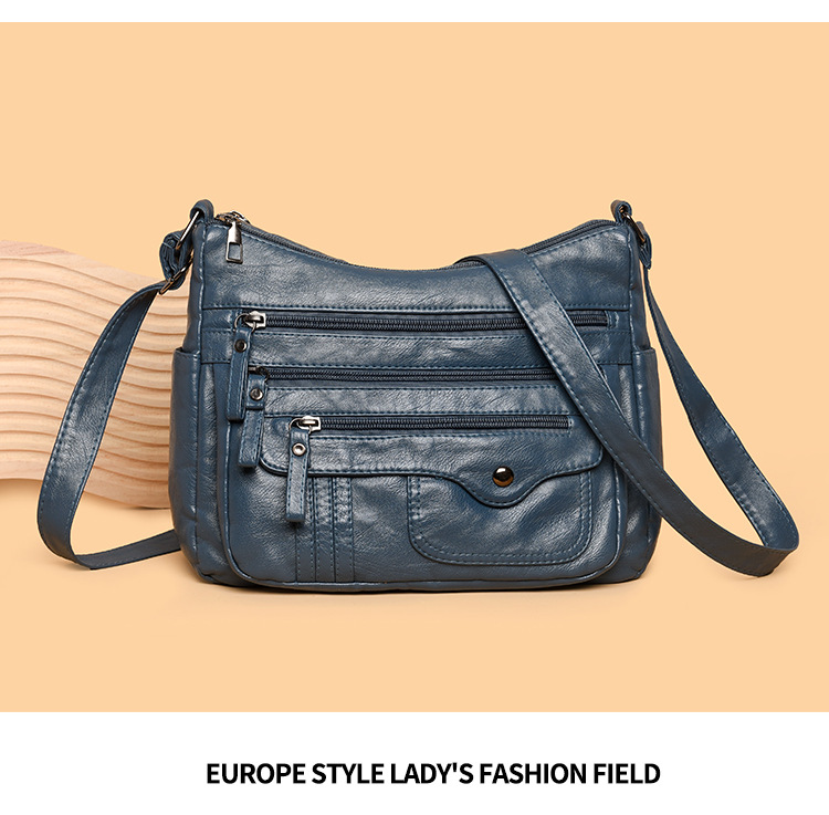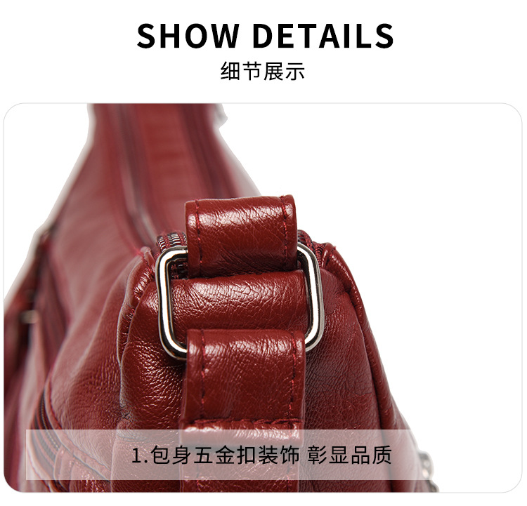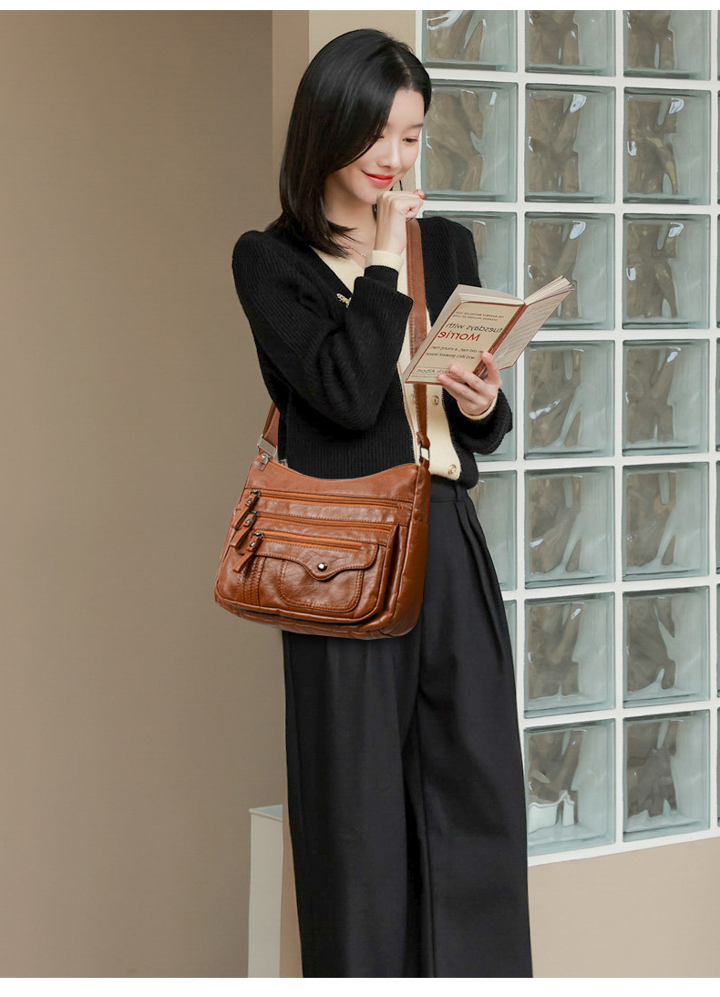 아마존 패션 트렌드 사계절 부드러운 가죽 멀티 컴파트먼트 멀티 포켓 스티치 멀티 레이어 싱글 숄더 크로스 바디 백 여성용 가방