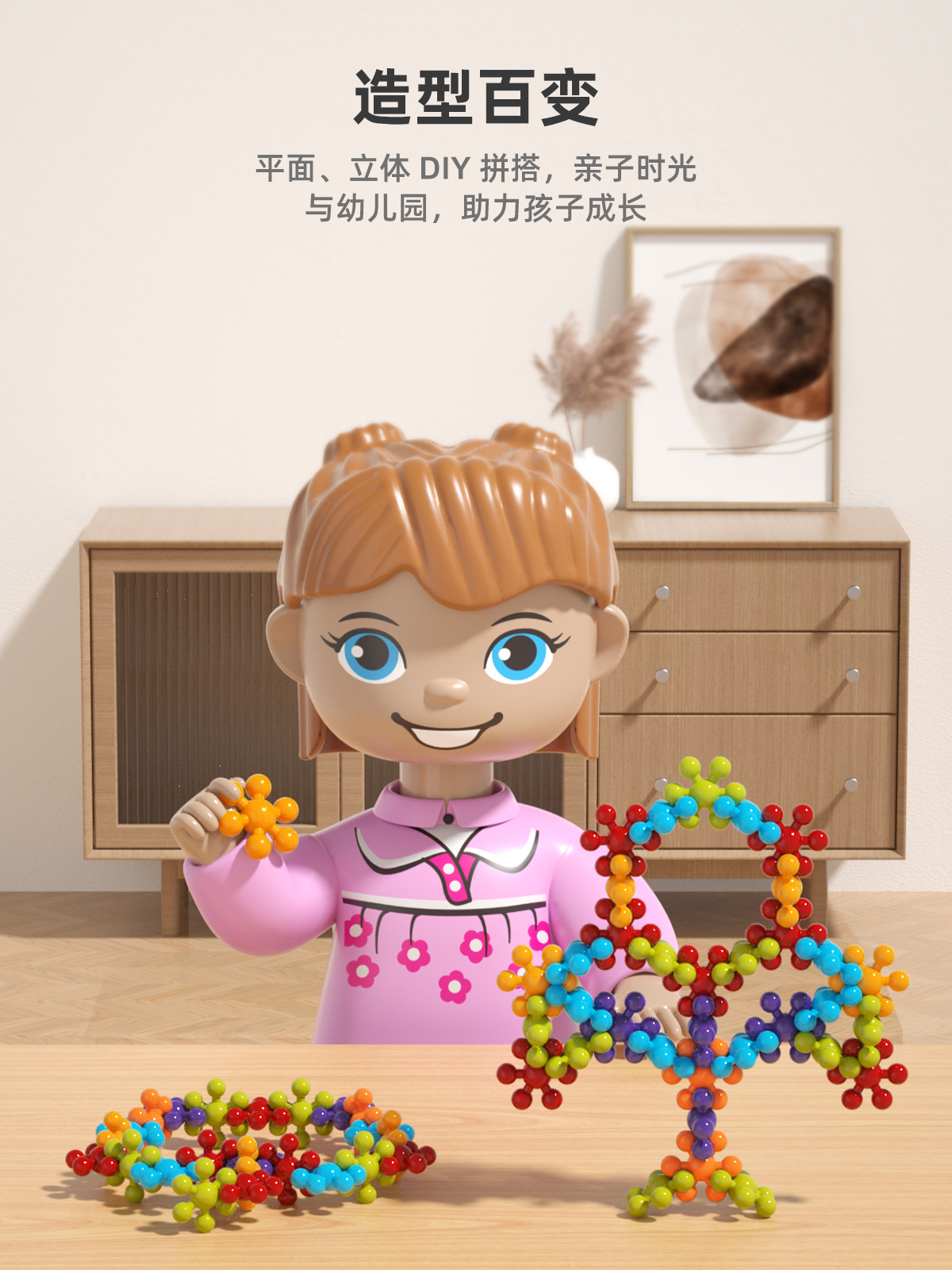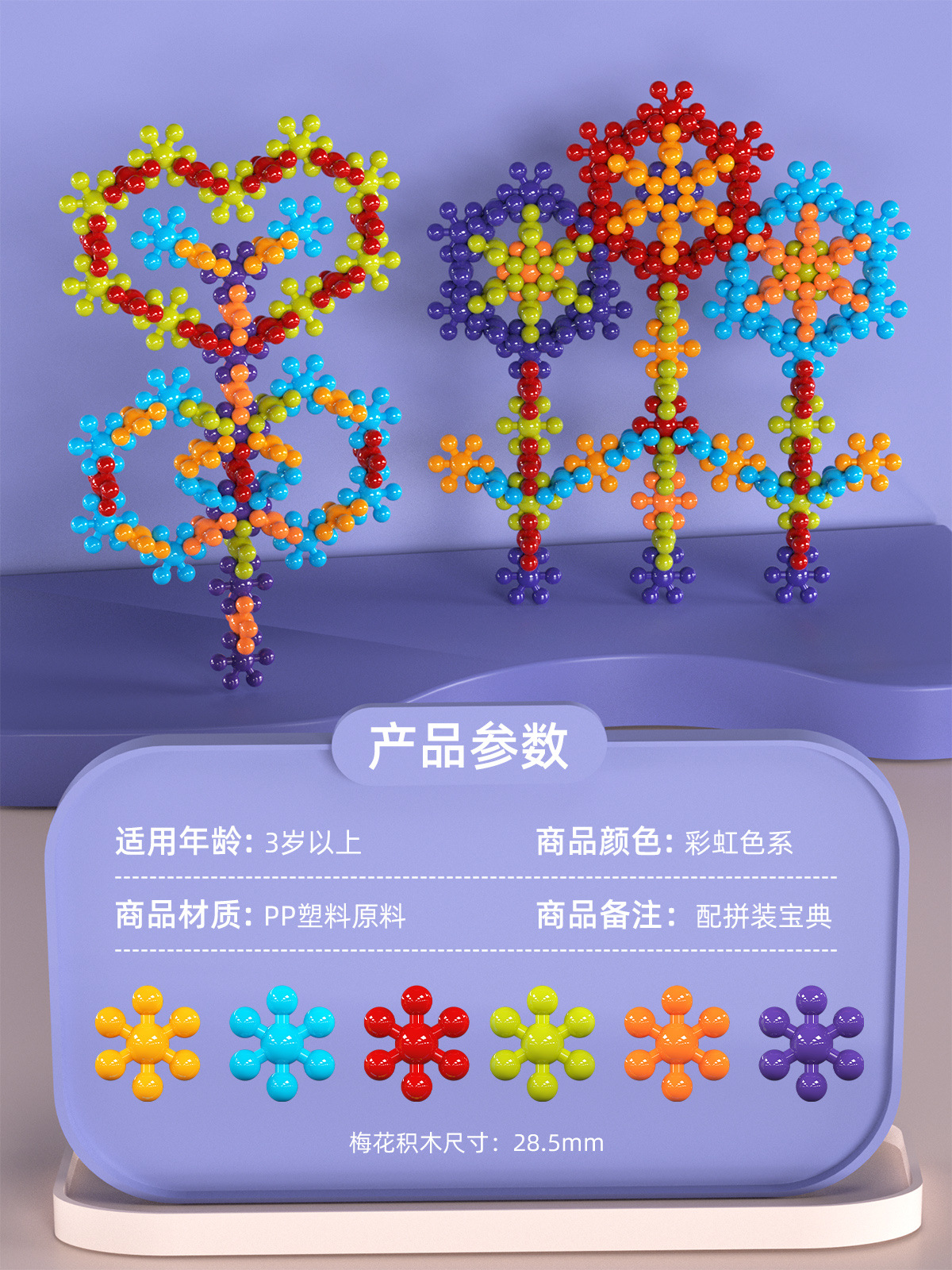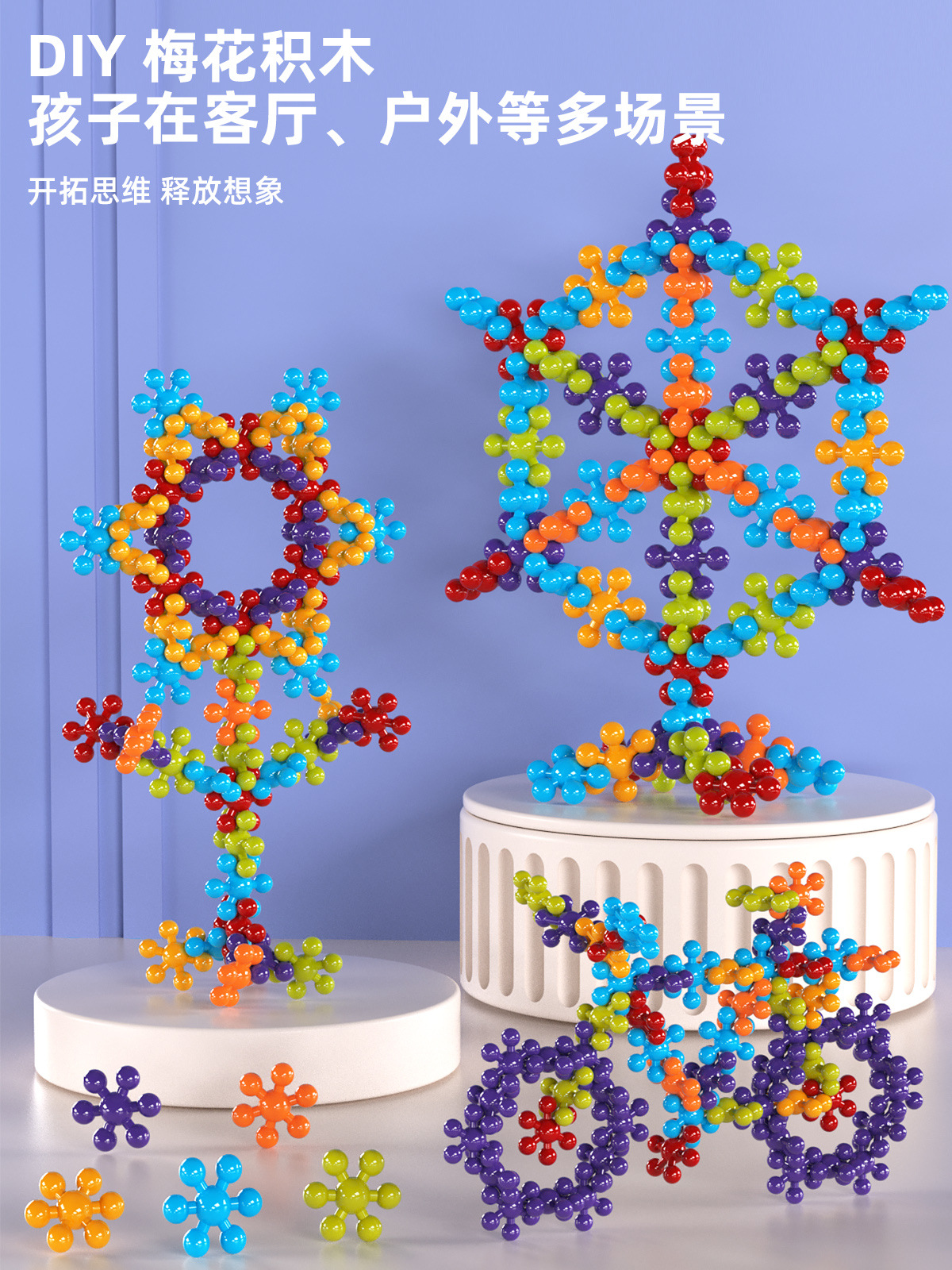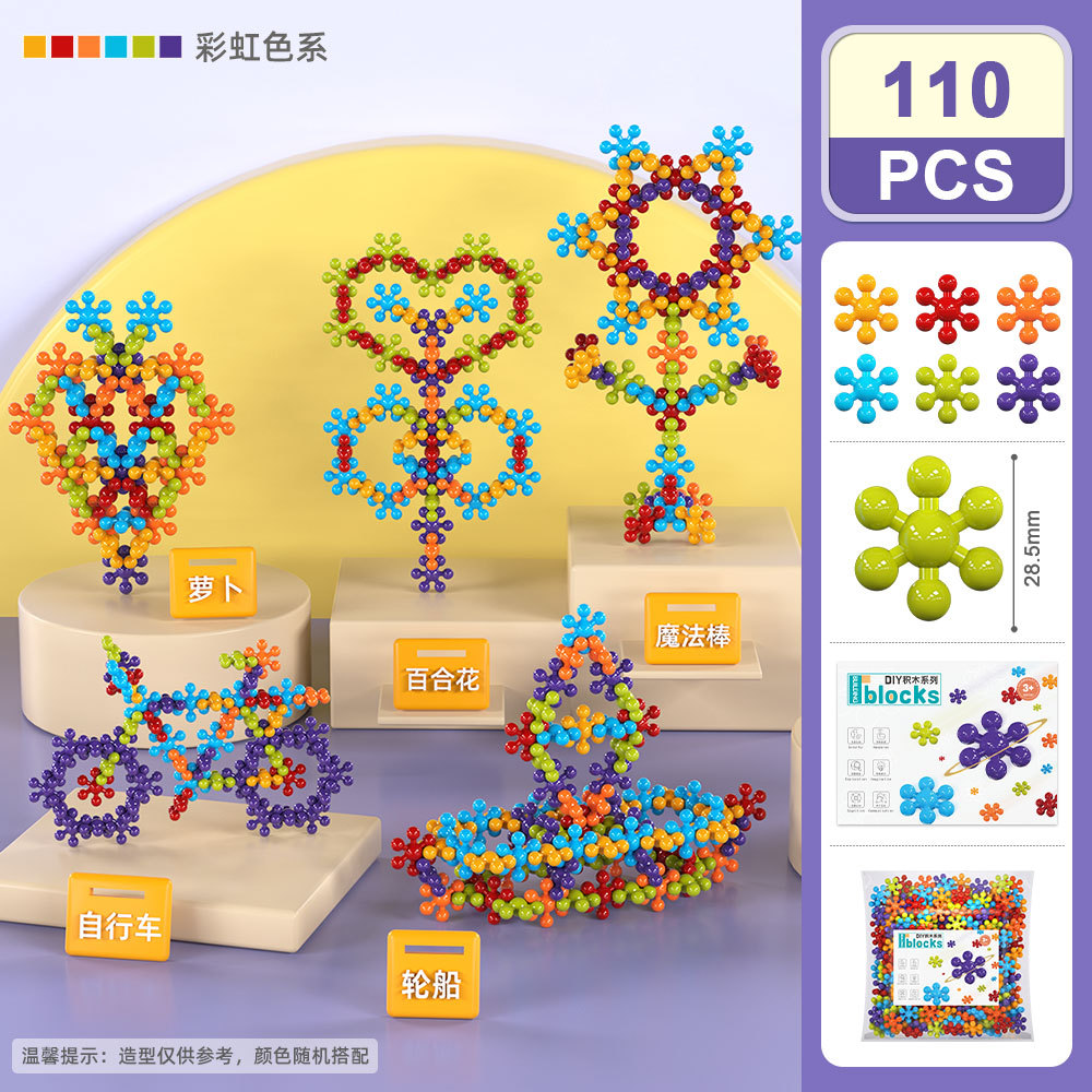 〖새로운 업그레이드〗3D 입체 매화 빌딩 블록 회전 어린이 눈송이 유치원 플라스틱 교육 장난감스토어 가기