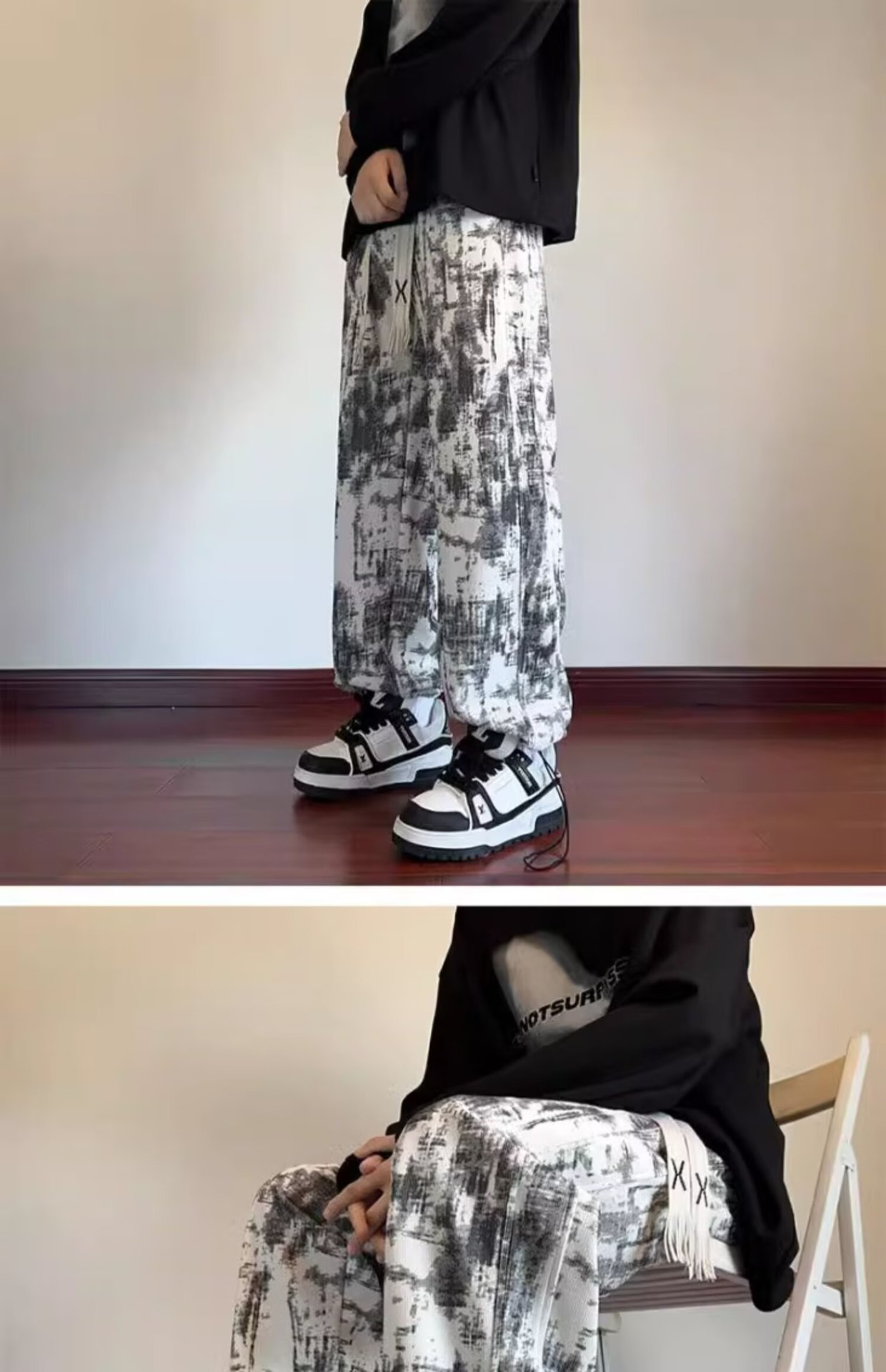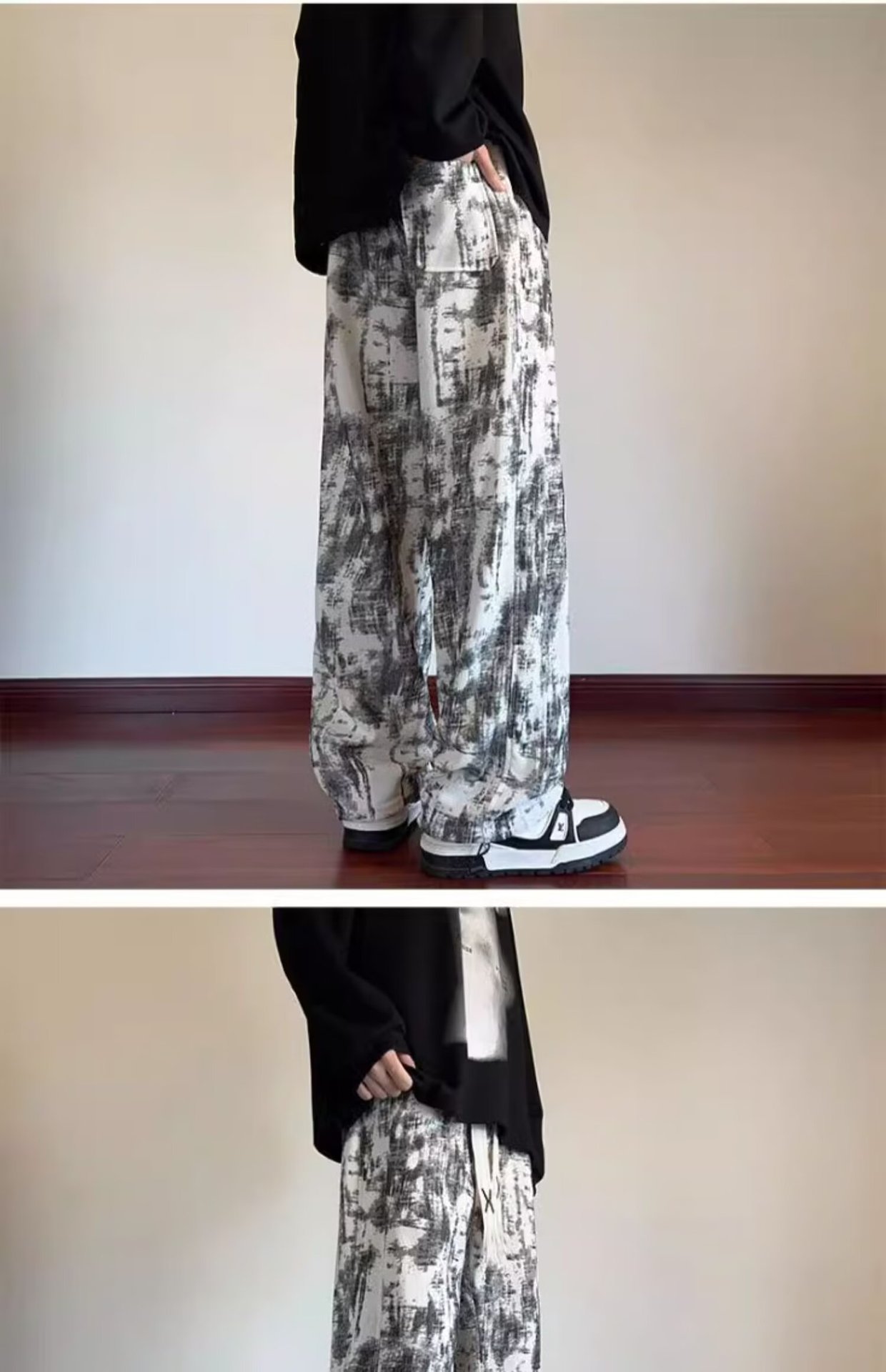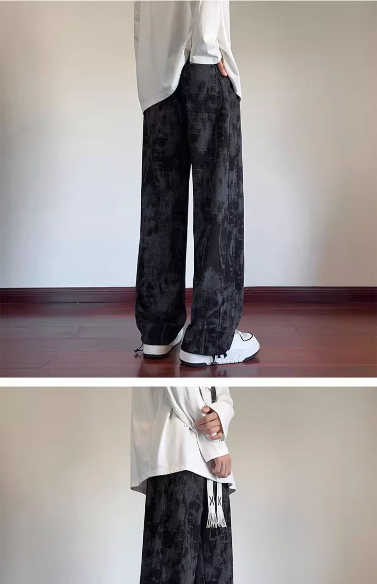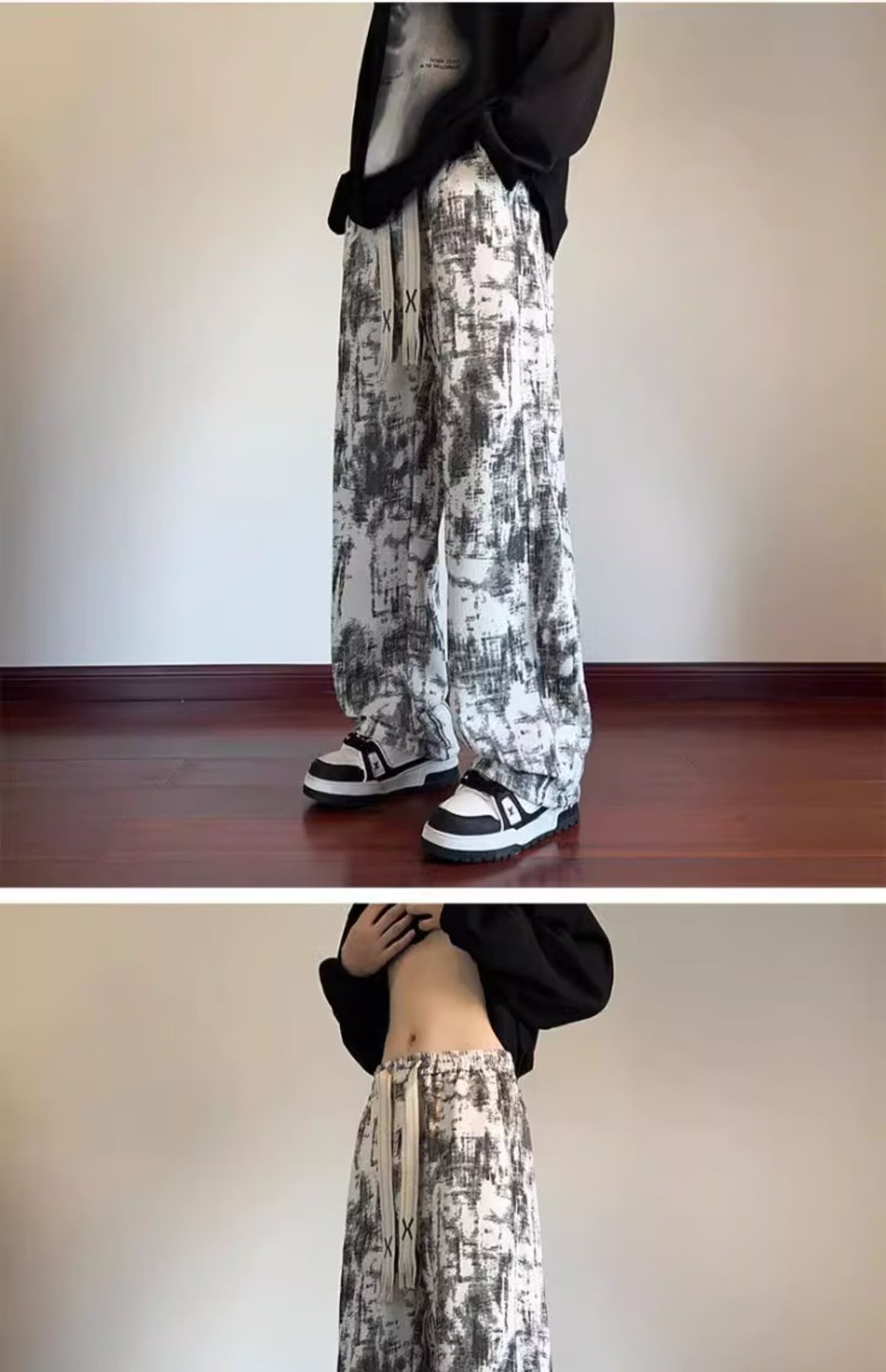 미국 타이 다이 캐주얼 바지 남자의 가을과 겨울 기모 두껍게 그려진 넓은 다리 바지 느슨한 슬리밍 스트레이트 스포츠 바지스토어 가기