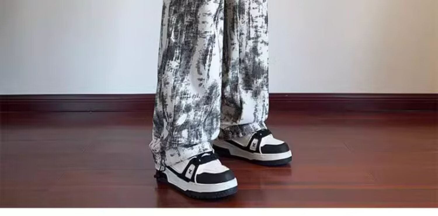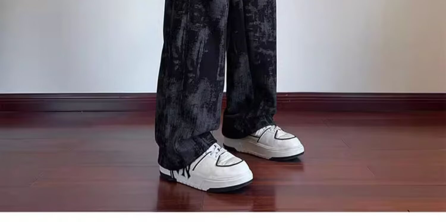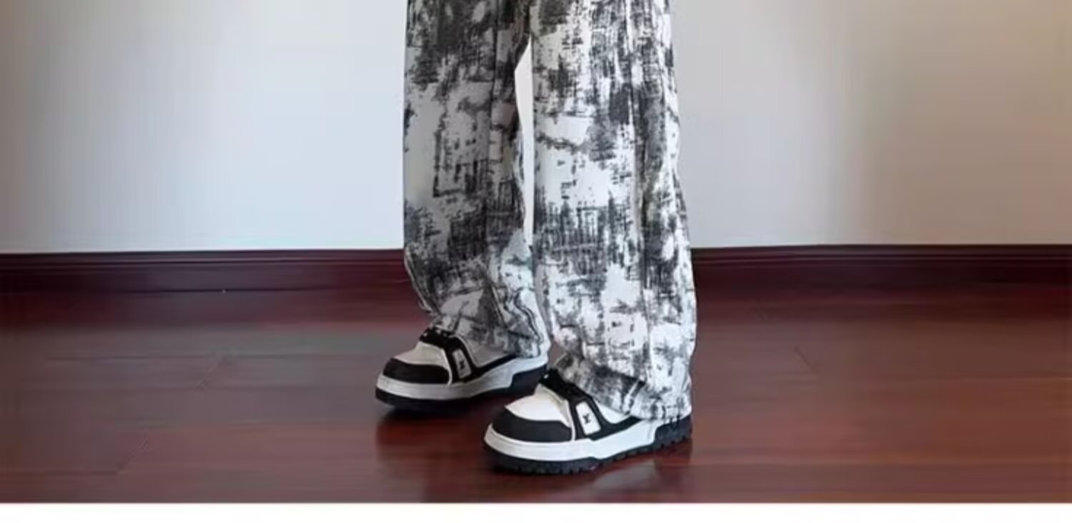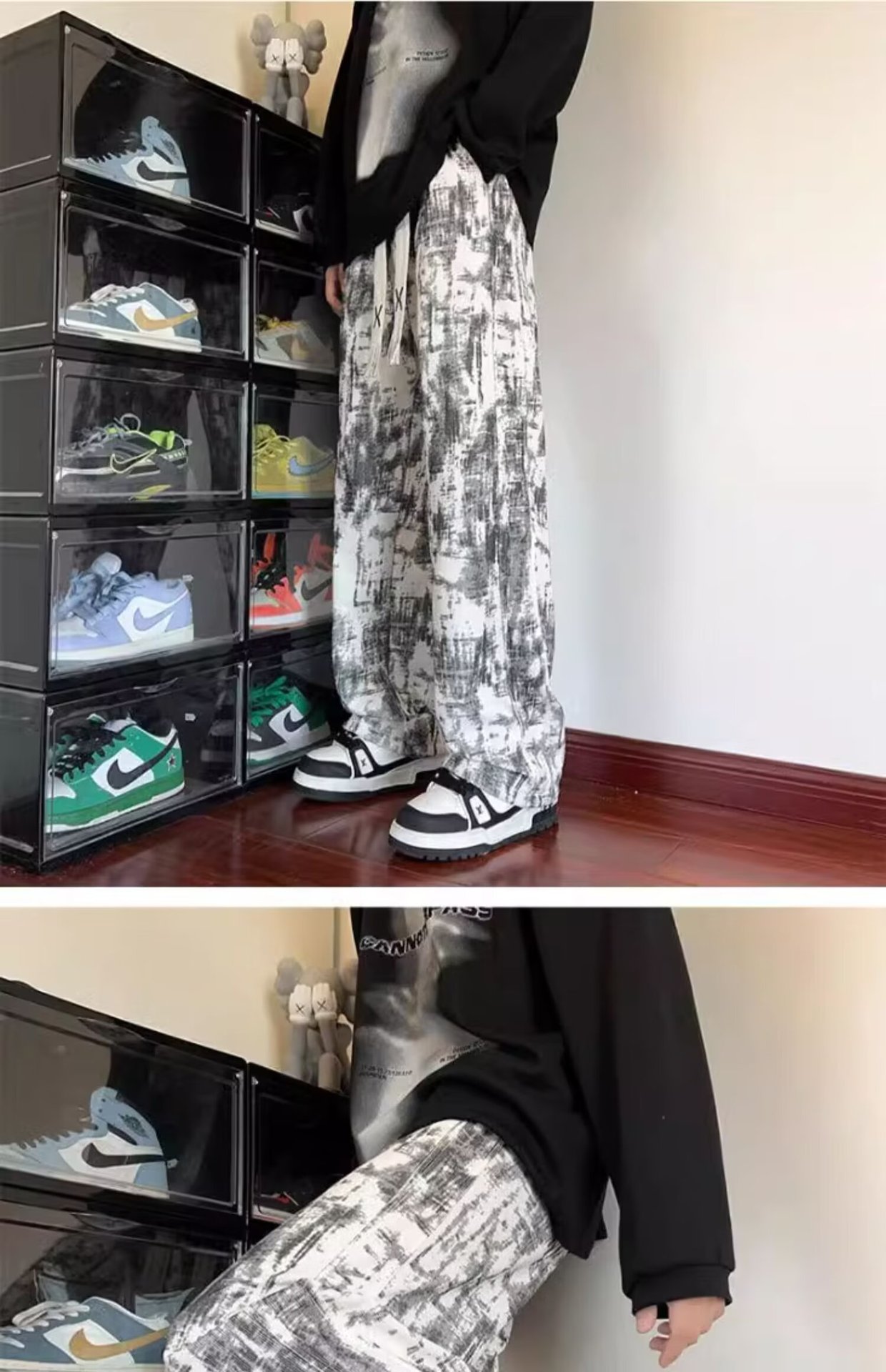 미국 타이 다이 캐주얼 바지 남자의 가을과 겨울 기모 두껍게 그려진 넓은 다리 바지 느슨한 슬리밍 스트레이트 스포츠 바지스토어 가기
