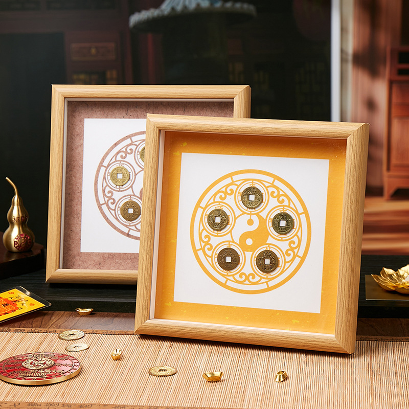 부와 평화를위한 5 명의 황제 돈 사진 프레임 장식품 진짜 고대 동전 사무실 가게 데스크탑 나무 창조적 인 테이블