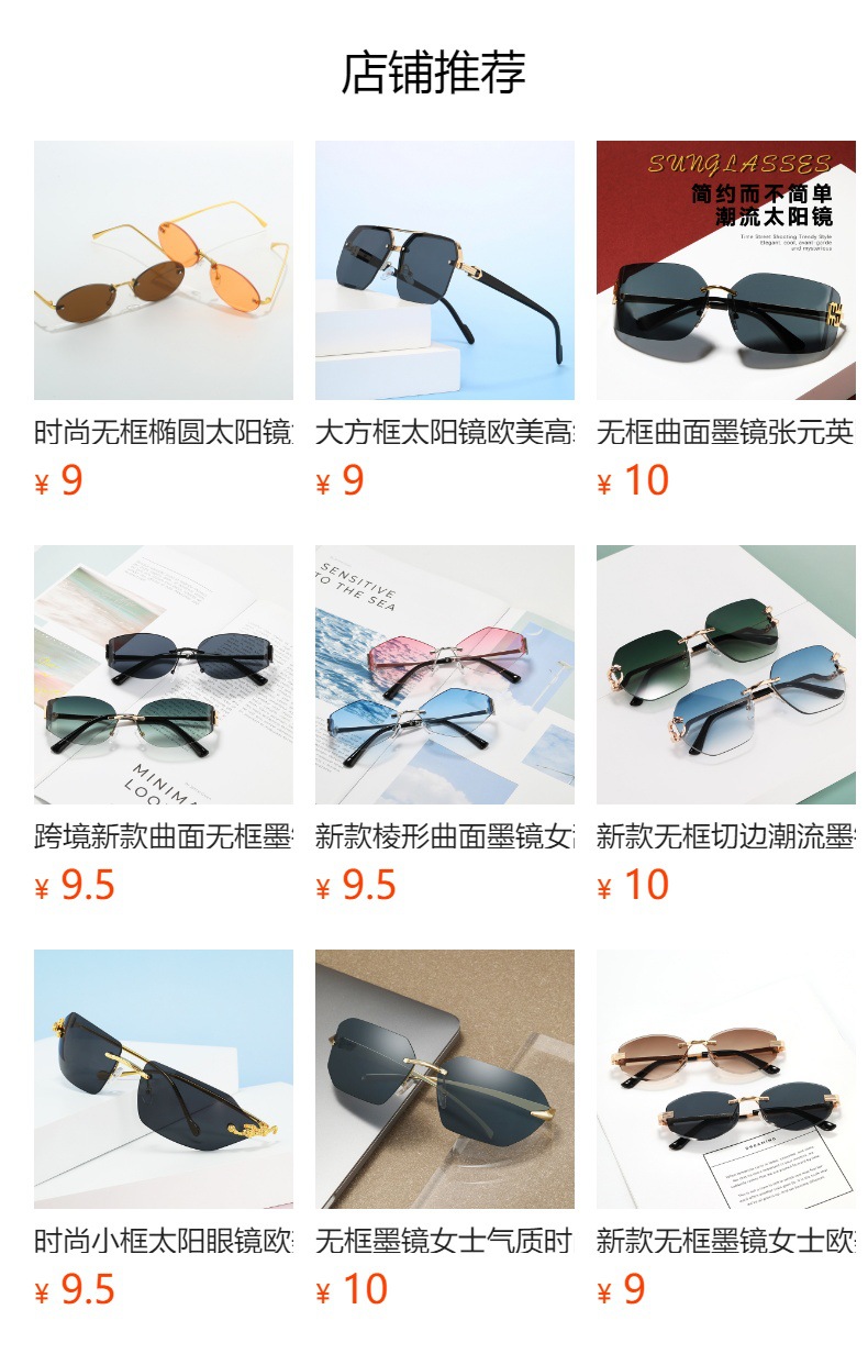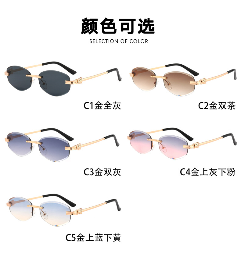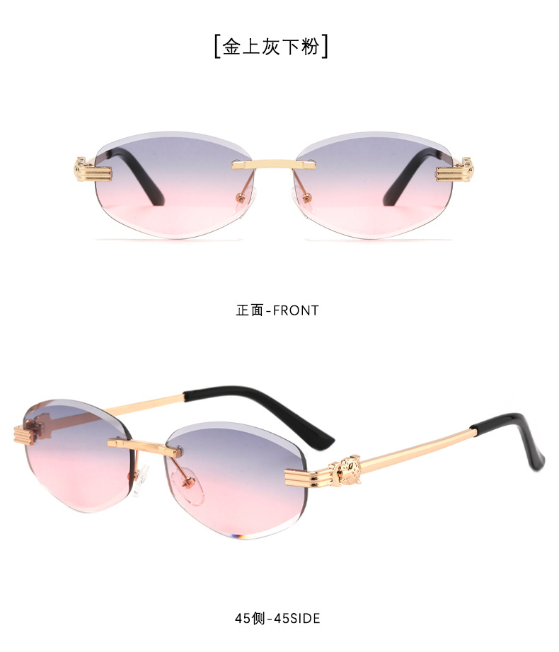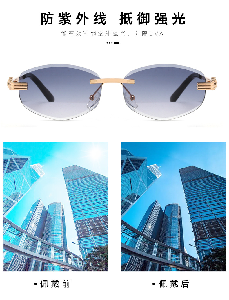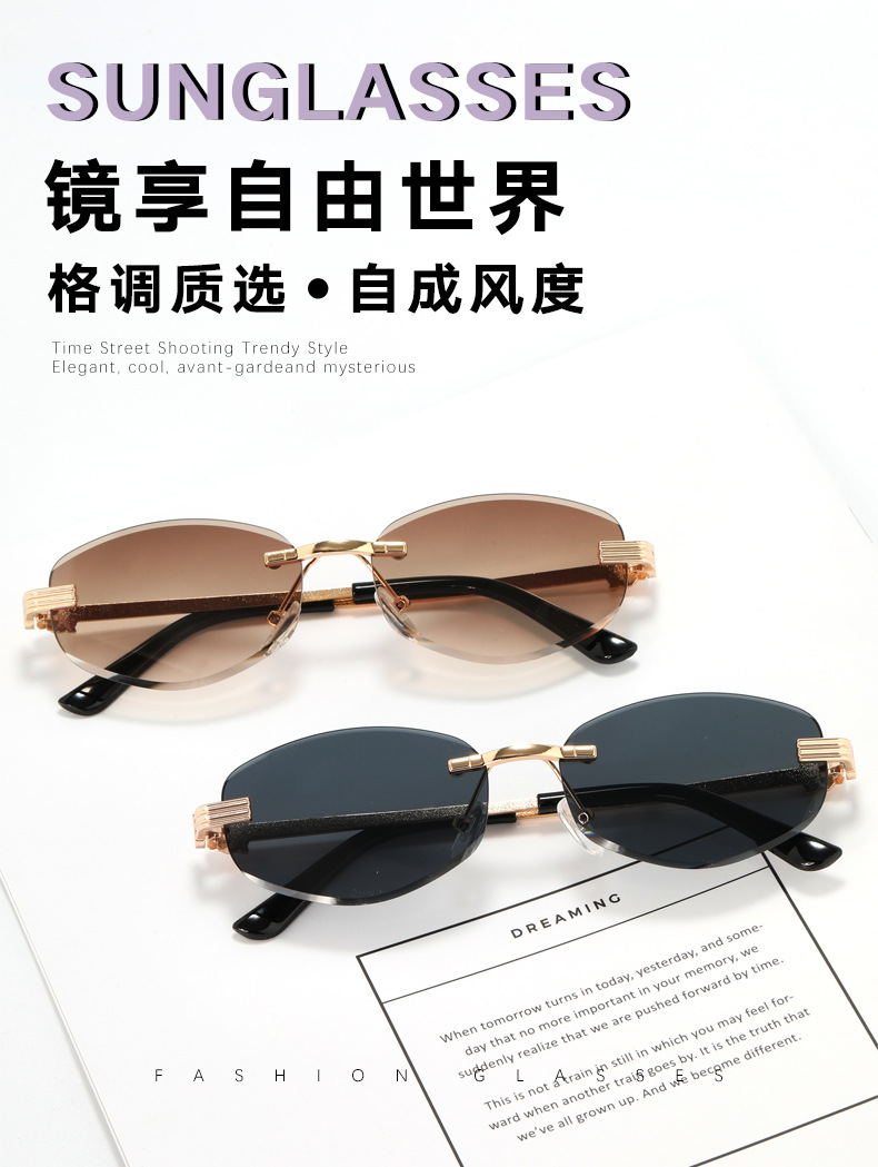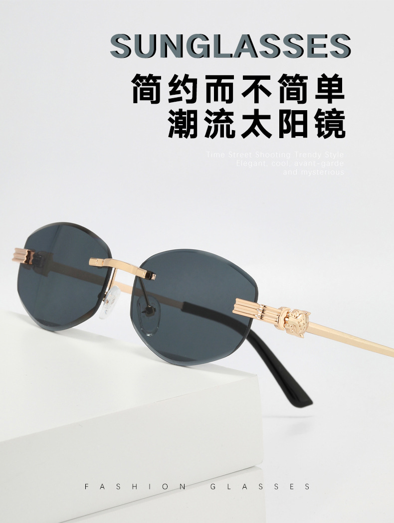 새로운 무테 선글라스 여성용 유럽 및 미국 스타일 패션 자외선 차단 선글라스 회색 금속 선글라스 pc스토어 가기